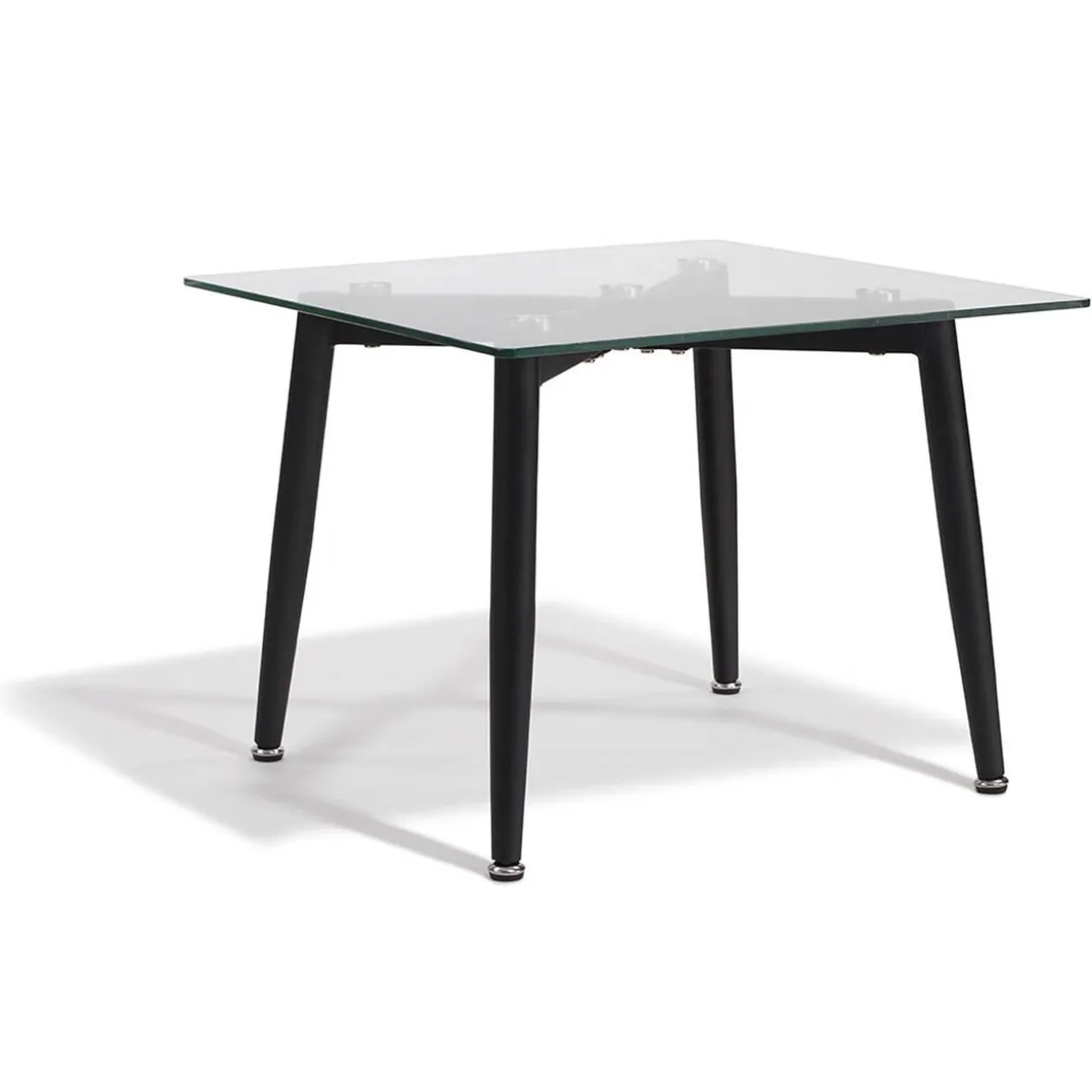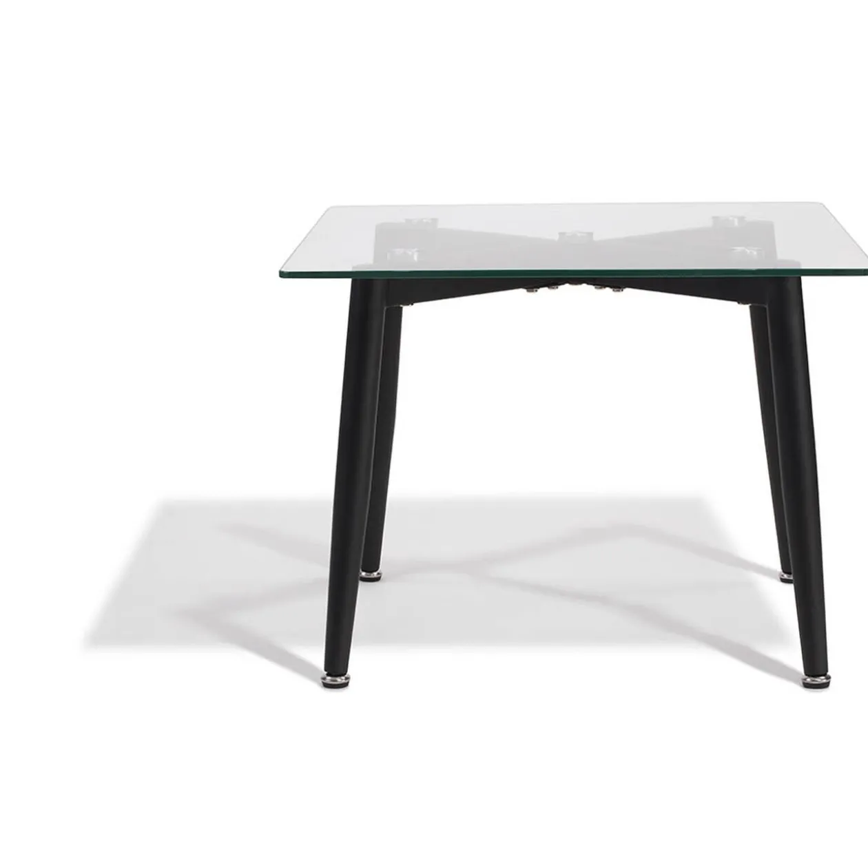 – Matières : plateau en verre trempé de 8mm et pieds en métal