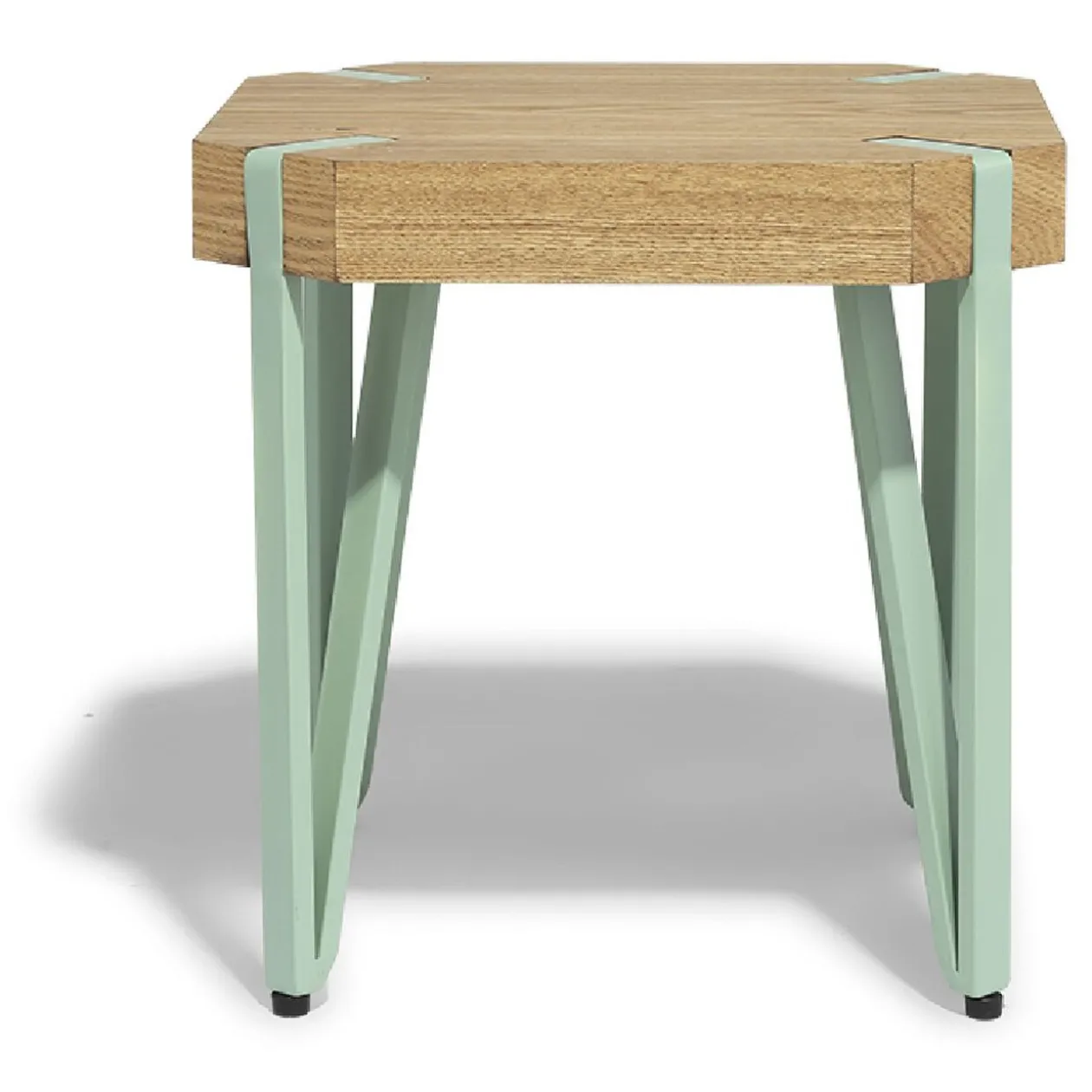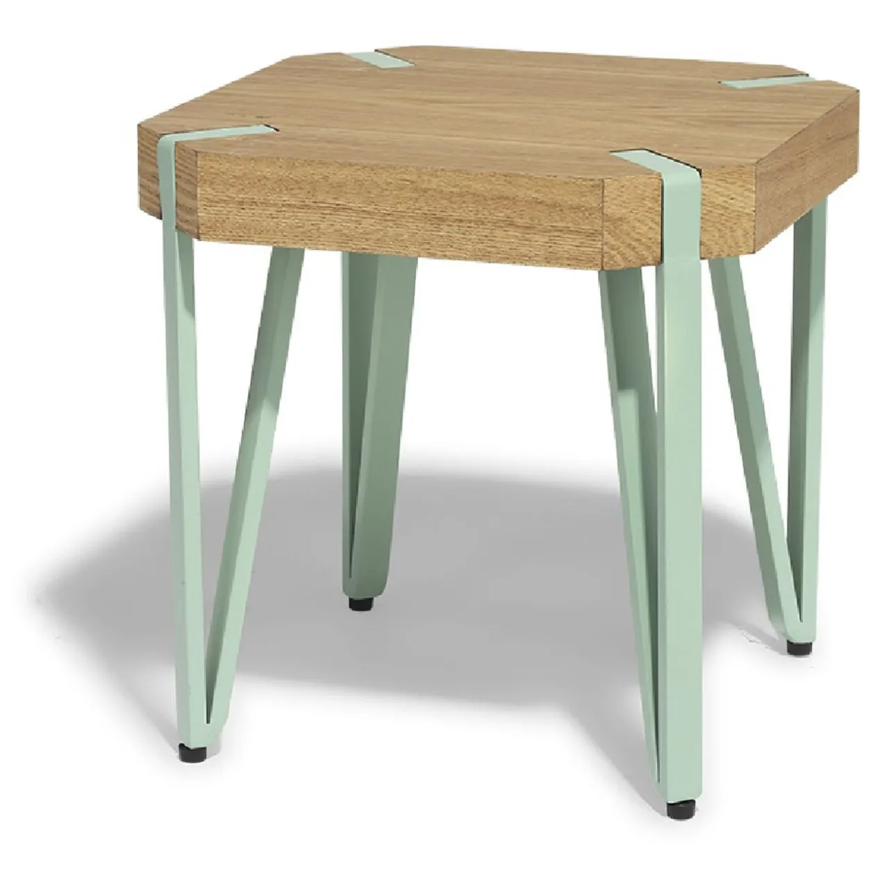 Vous êtes à la recherche de mobilier fonctionnel et original ? Optez pour le bout de canapé Orna ! Si son plateau couleur bois et ses pieds en métal s’inscrivent dans la tendance industrielle, il possède le petit truc en plus qui vous séduira : ses pieds couleur vert d’eau !