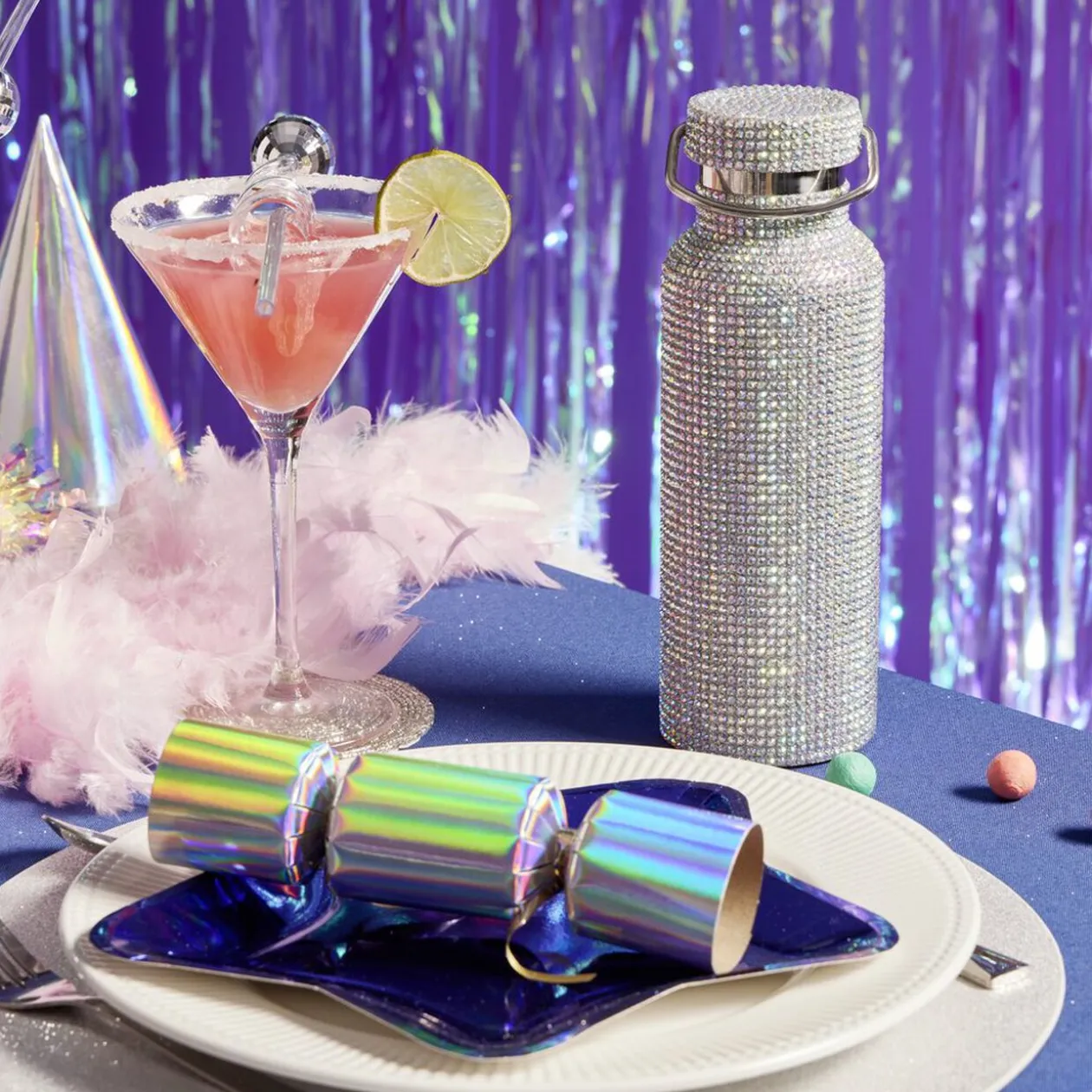 Apportez une touche de glamour à vos boissons avec cette bouteille isotherme en inox ornée de strass étincelants.