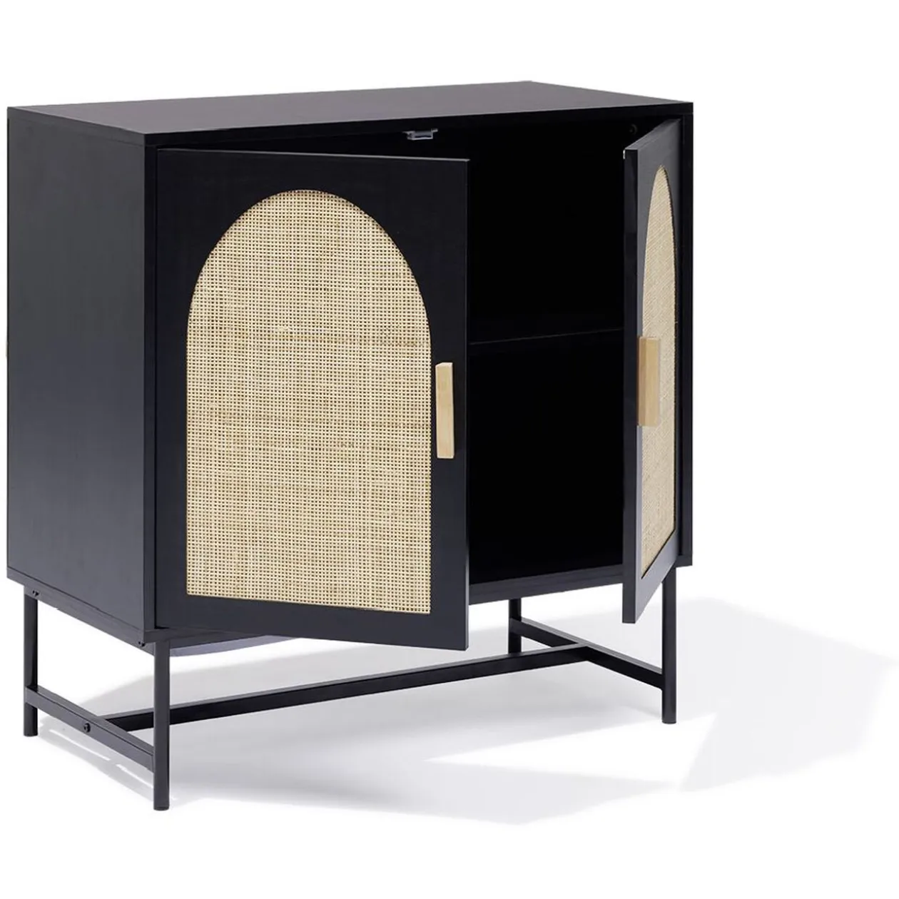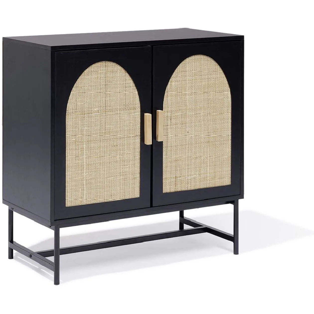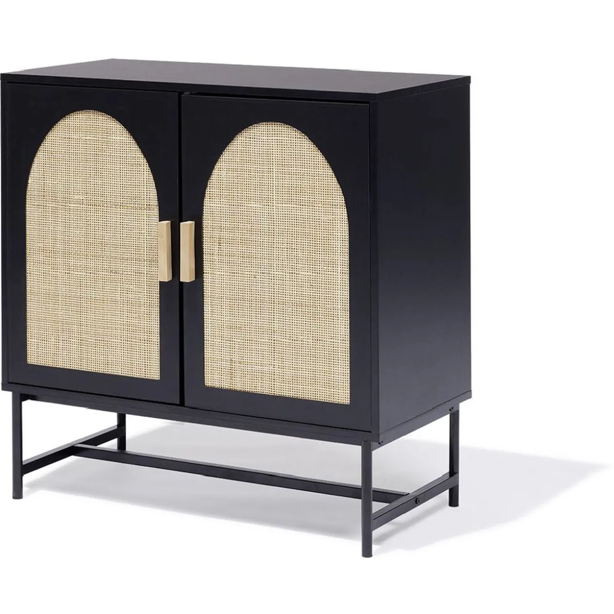 - Matière(s) : panneau de particules, revêtement placage de papier / acier, finition peinture polymère / rotin