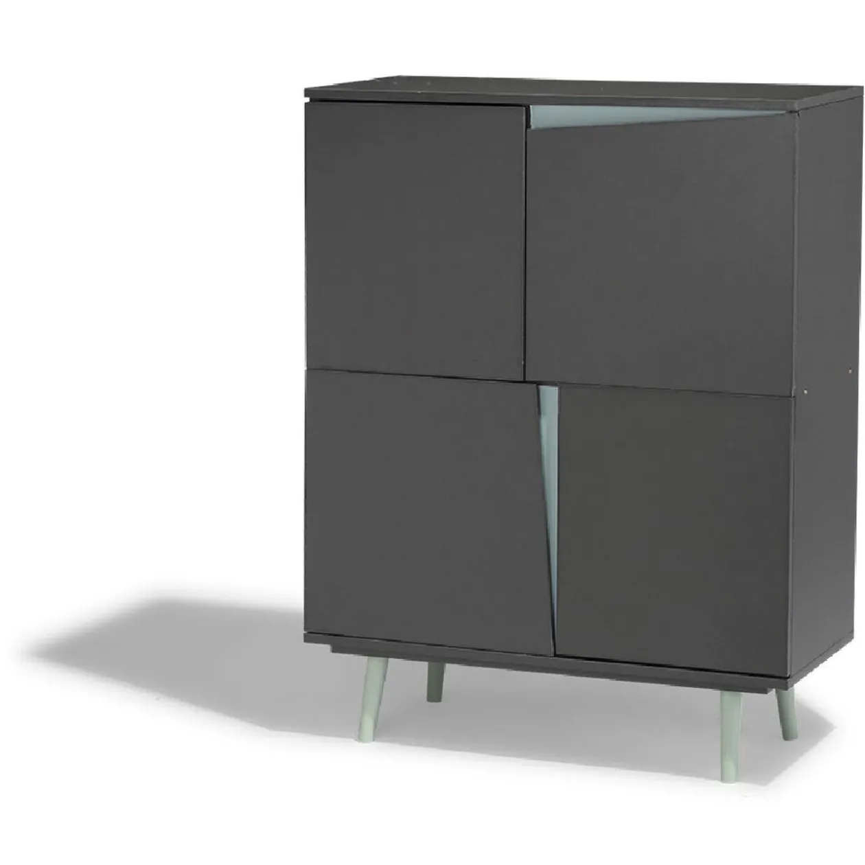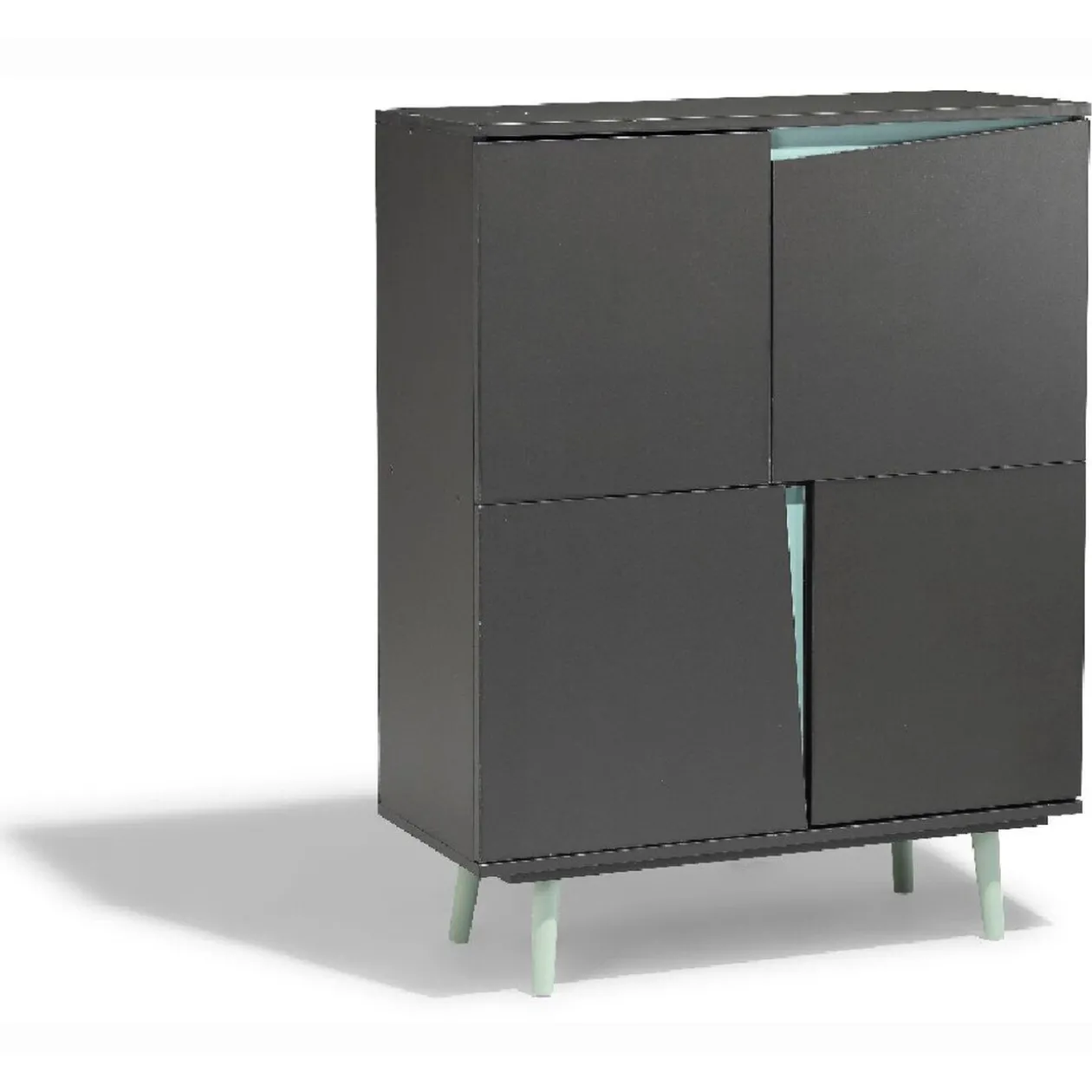 Les amateurs de meubles contemporains tomberont sous le charme du buffet Jamy. Avec ses lignes droites et sa couleur anthracite, il s’intégrera à toutes les décorations et trouvera tout à fait sa place au sein de votre salle à manger. Vous apprécierez les touches de couleur vert d’eau sur ses portes qui lui confèrent une apparence presque futuriste tout en restant délicates. Vous retrouverez cette nuance de couleur sur ses pieds discrets qui soutiennent l’ensemble tout en lui conférant charme et élégance. Pratique avec ses quatre portes, il vous permettra de stocker votre vaisselle et vos effets personnels à l’abri des regards et d’y avoir accès facilement en cas de besoin.