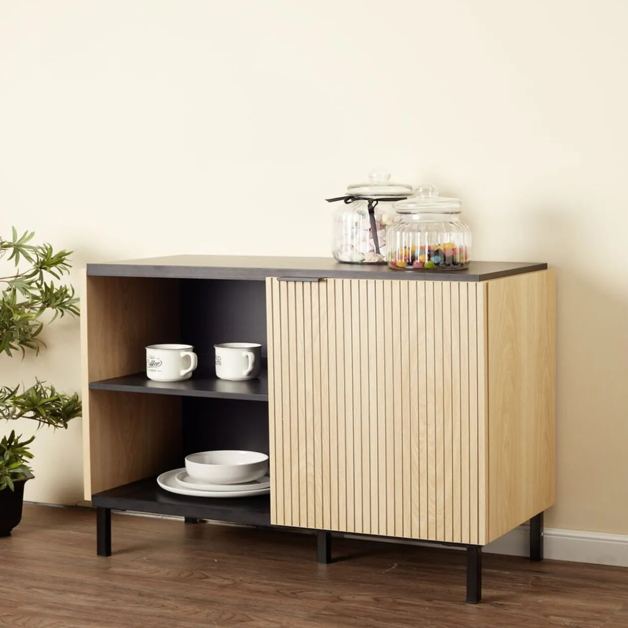 Ses lignes épurées et sa porte à rainures en font un meuble à la fois fonctionnel et design, parfait pour sublimer n’importe quelle pièce de votre maison.