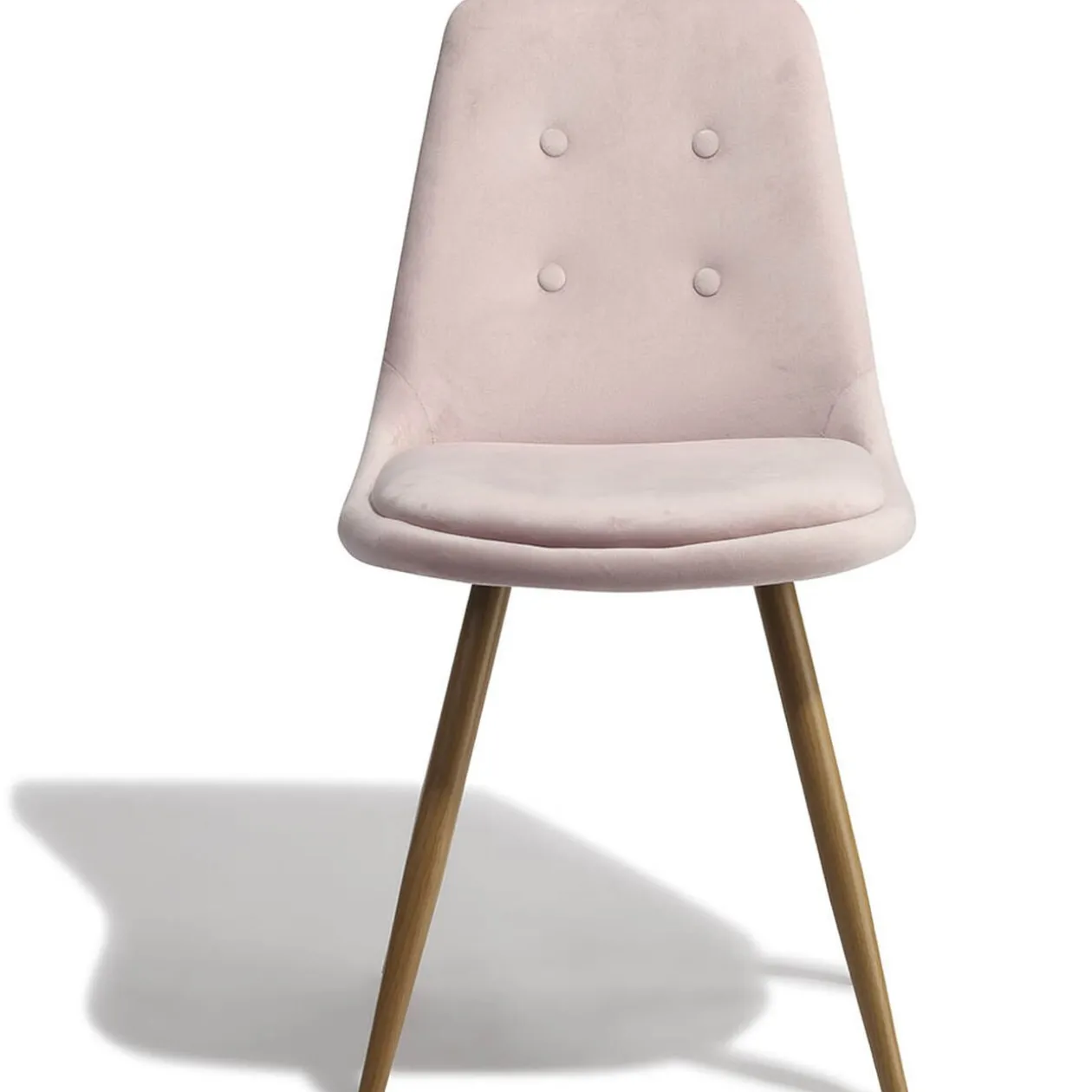 Lorsque vous accueillez chez vous des amis ou des membres de votre famille, asseyez-vous sur les chaises Giulia ! Vendues par lot de 2, elles sont idéales pour les salons, mais aussi pour les chambres. Placez-les autour d’une table, devant un bureau, ou bien devant une télévision. S’inspirant du design des chaises scandinaves, elles ont une structure supérieure ne se composant que du siège et du dossier. Ceux-ci sont revêtus de velours 100% polyester, et disposent d’un garnissage en mousse de polyuréthane pour vous assurer un confort idéal. 4 pieds soutiennent cet ensemble. En métal, ils garantissent une bonne solidité. Le papier décor qui les entoure assure un charme supplémentaire. De couleur rose, placez ces chaises dans des décorations colorées pour agrandir votre espace. Grâce aux chaises Giulia roses, obtenez des pièces hautes en couleur !