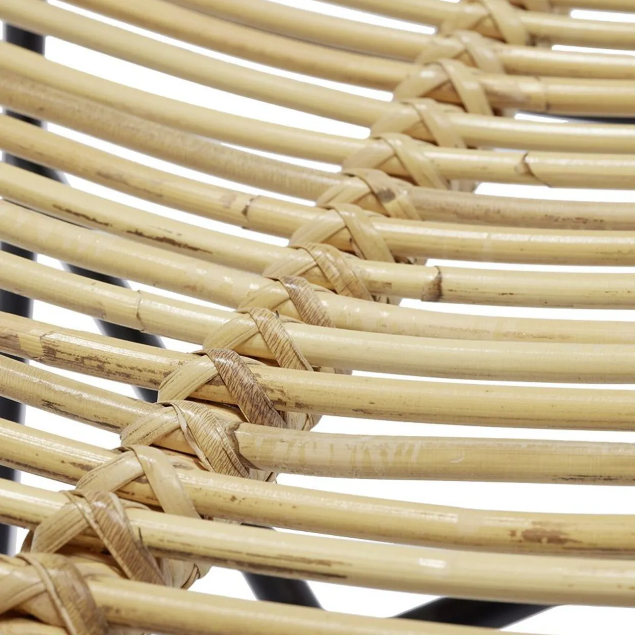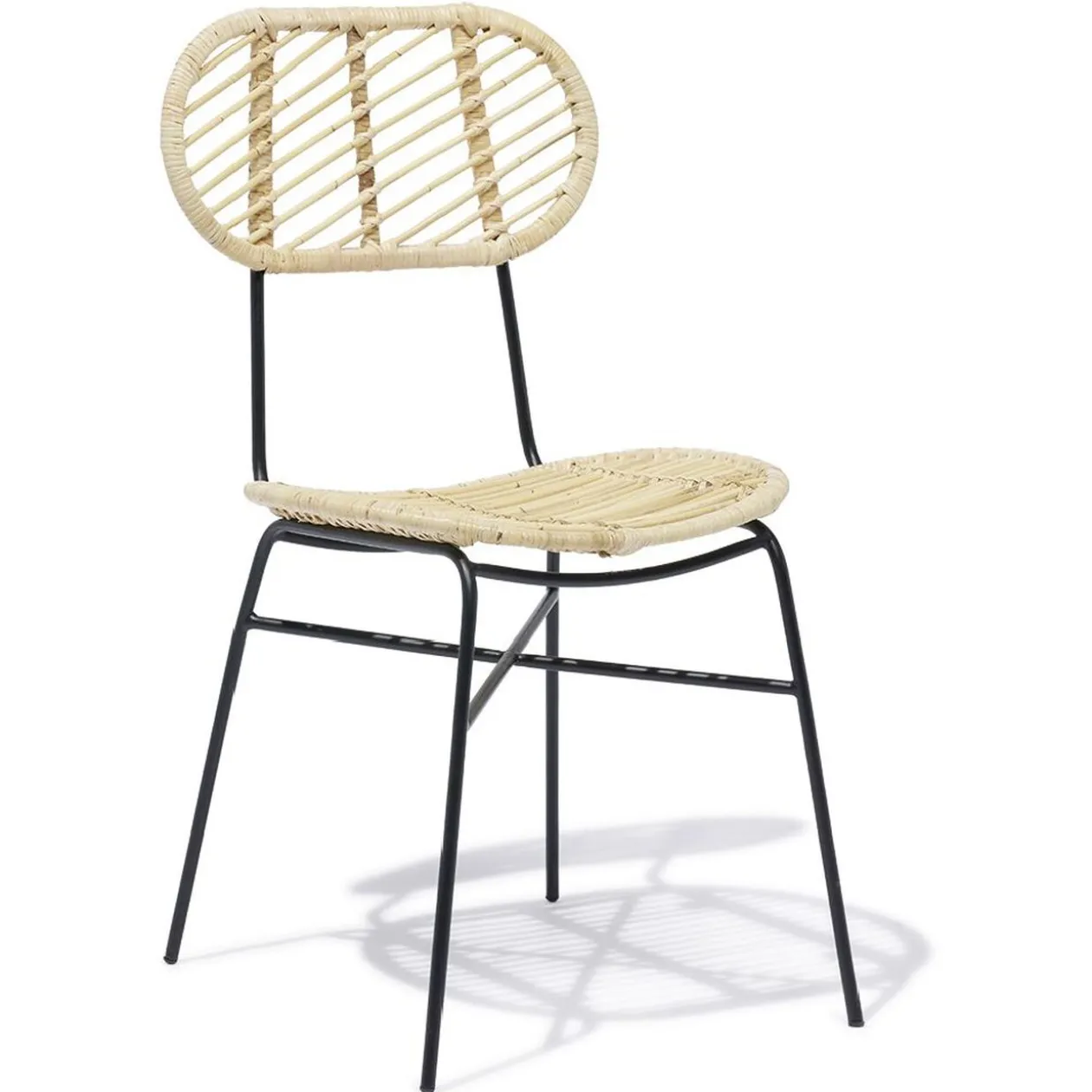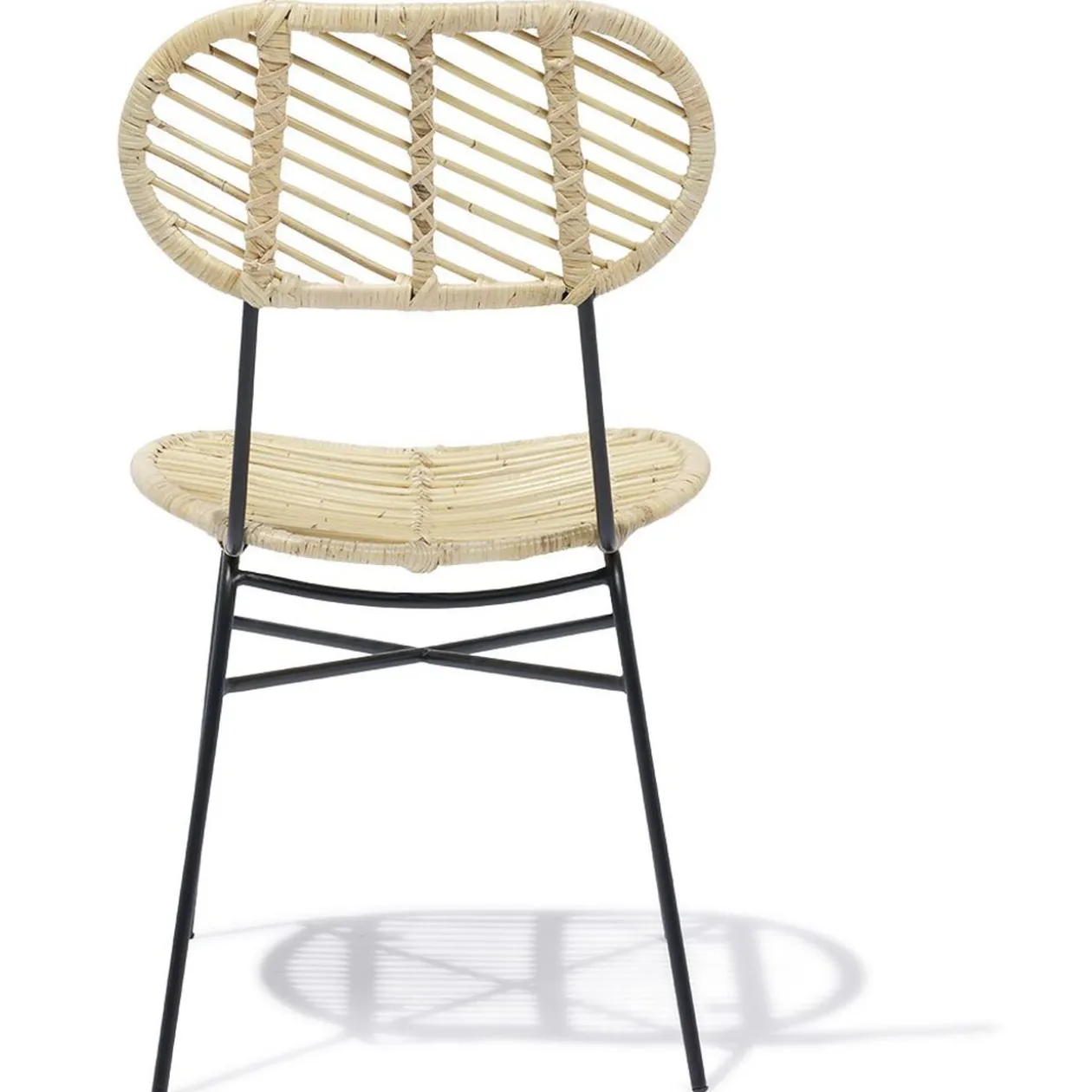 Ambiance exotique assurée autour de votre table à manger grâce à la chaise Malang en acier noir et rotin naturel.