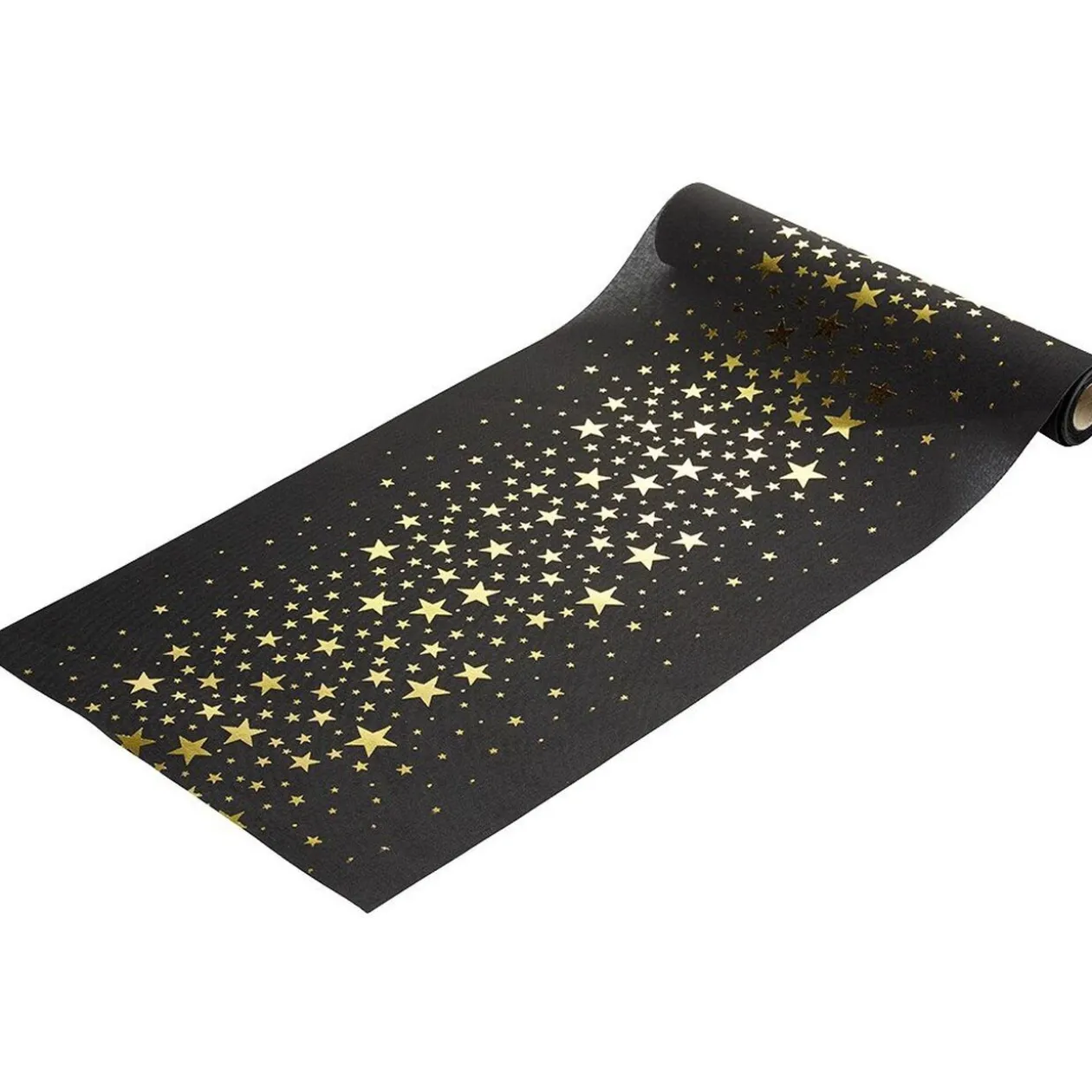 Si vous préférez une déco élégante et sobre, choisissez ce chemin de table de couleur noire et dorée. Ces deux nuances apporteront une touche de raffinement à l’ensemble de votre décor. Ce chemin de table vous permettra d’utiliser une nappe au ton neutre pour un mariage harmonieux des couleurs.