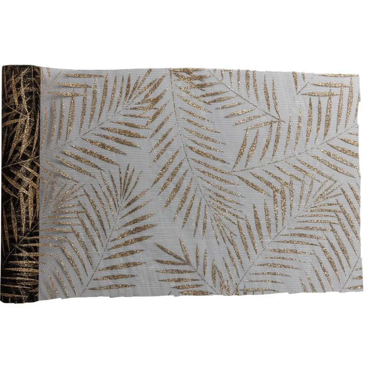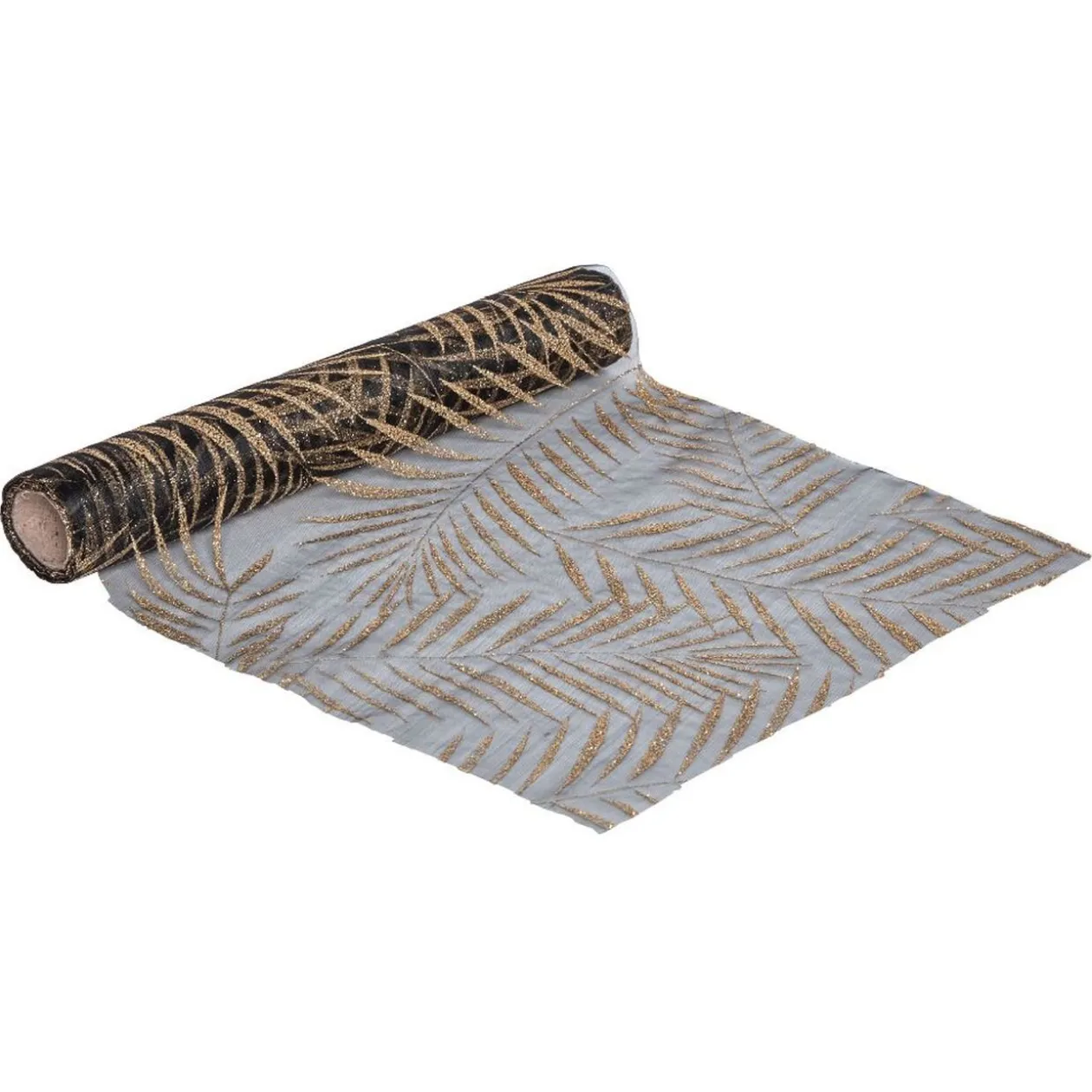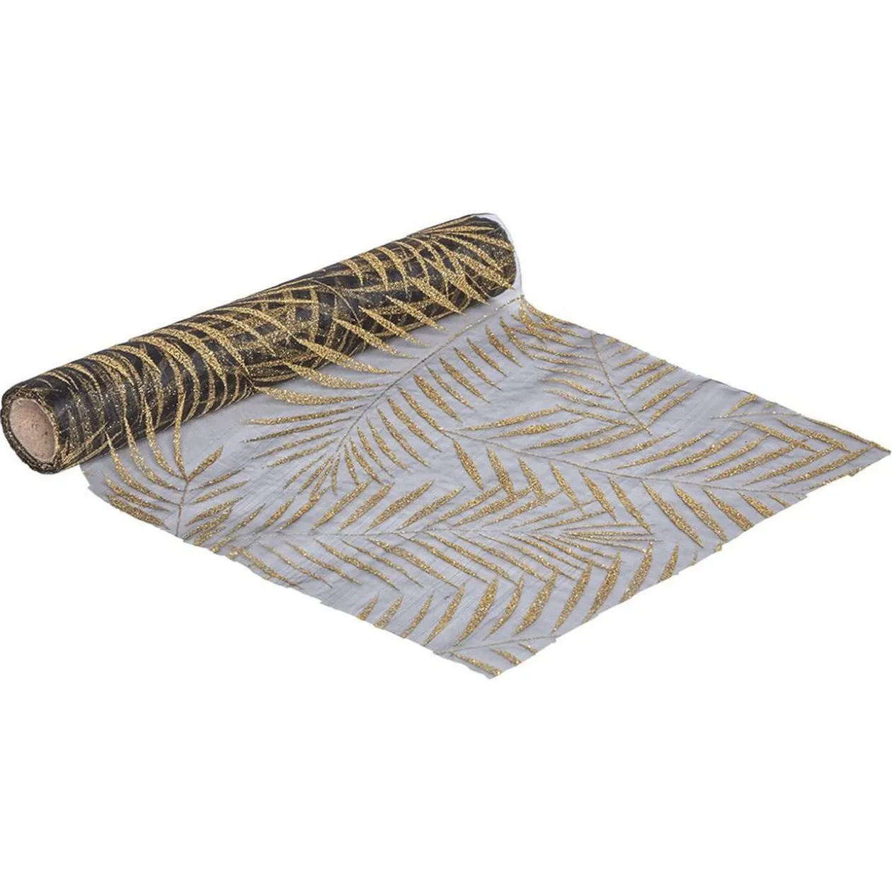Joli chemin de table noir motif feuille dorée, sobre et raffiné il habillera votre table avec classe lors de vos réceptions.