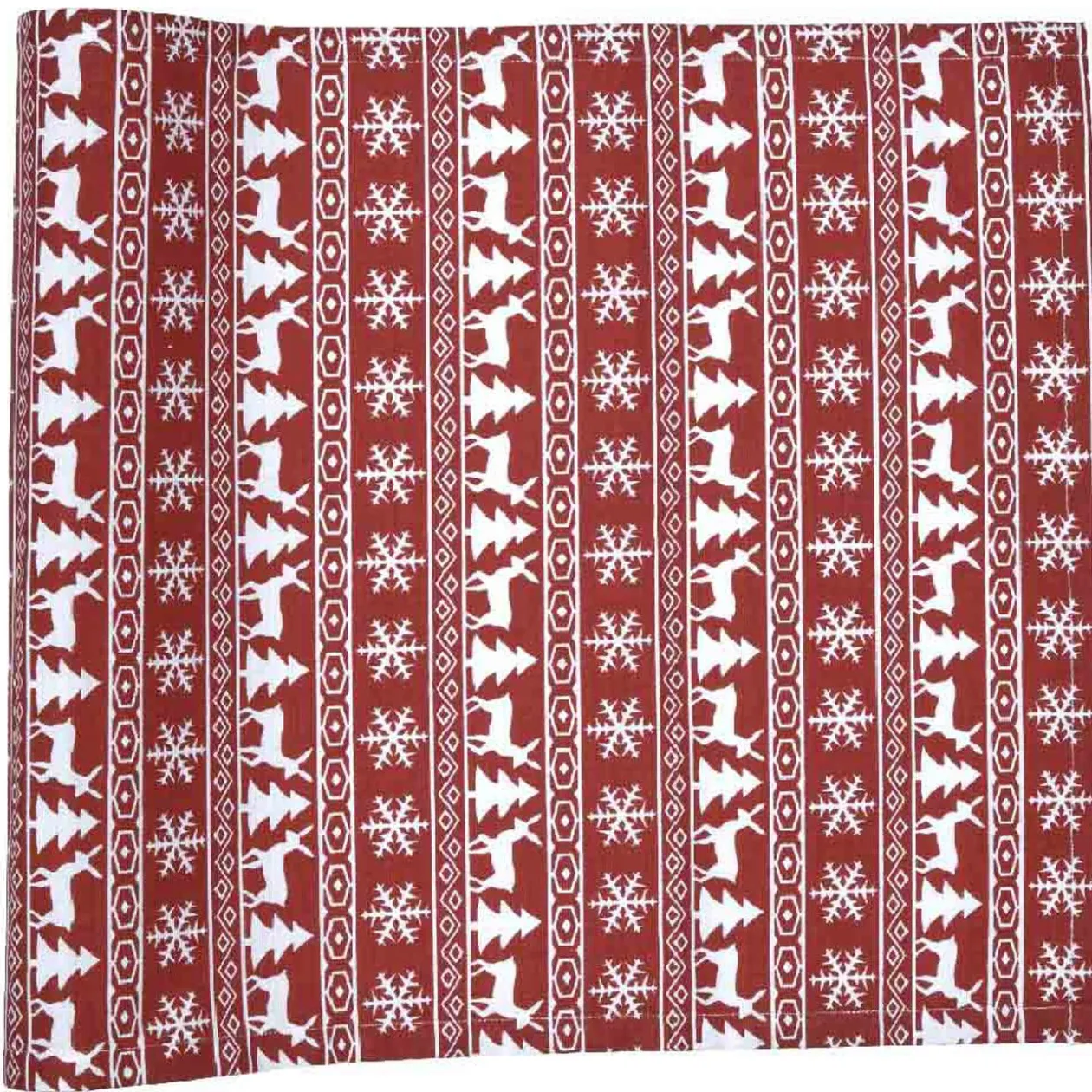 Décorez votre table de Noël avec ce chemin de table. De couleur rouge, avec ces motifs rennes et flocons blancs, il enchantera vos repas de fêtes et apportera à un côté chaleureux et convivial au réveillon.