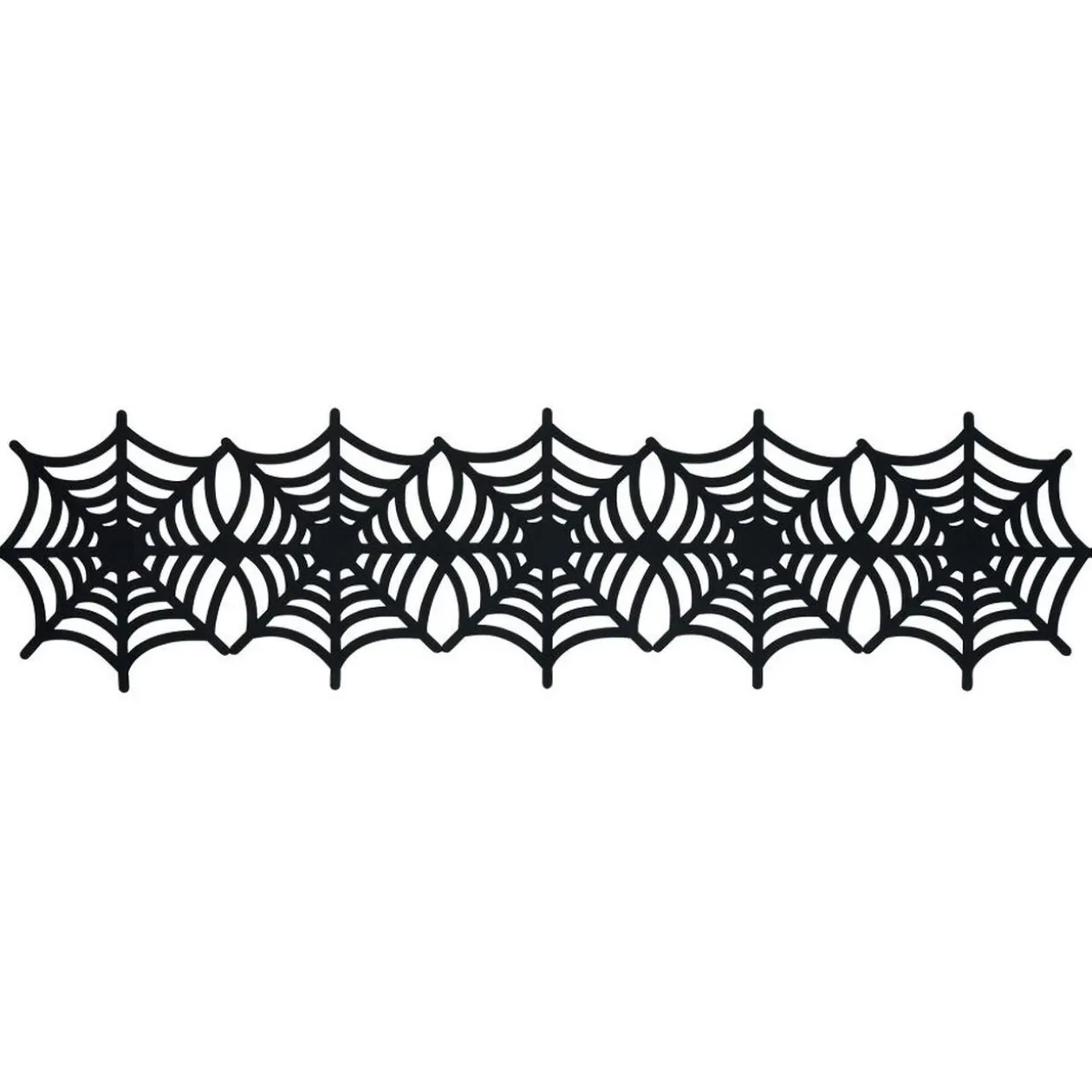 Chemin de table design toile d’araignée pour une décoration originale de votre goûter ou repas d’Halloween.