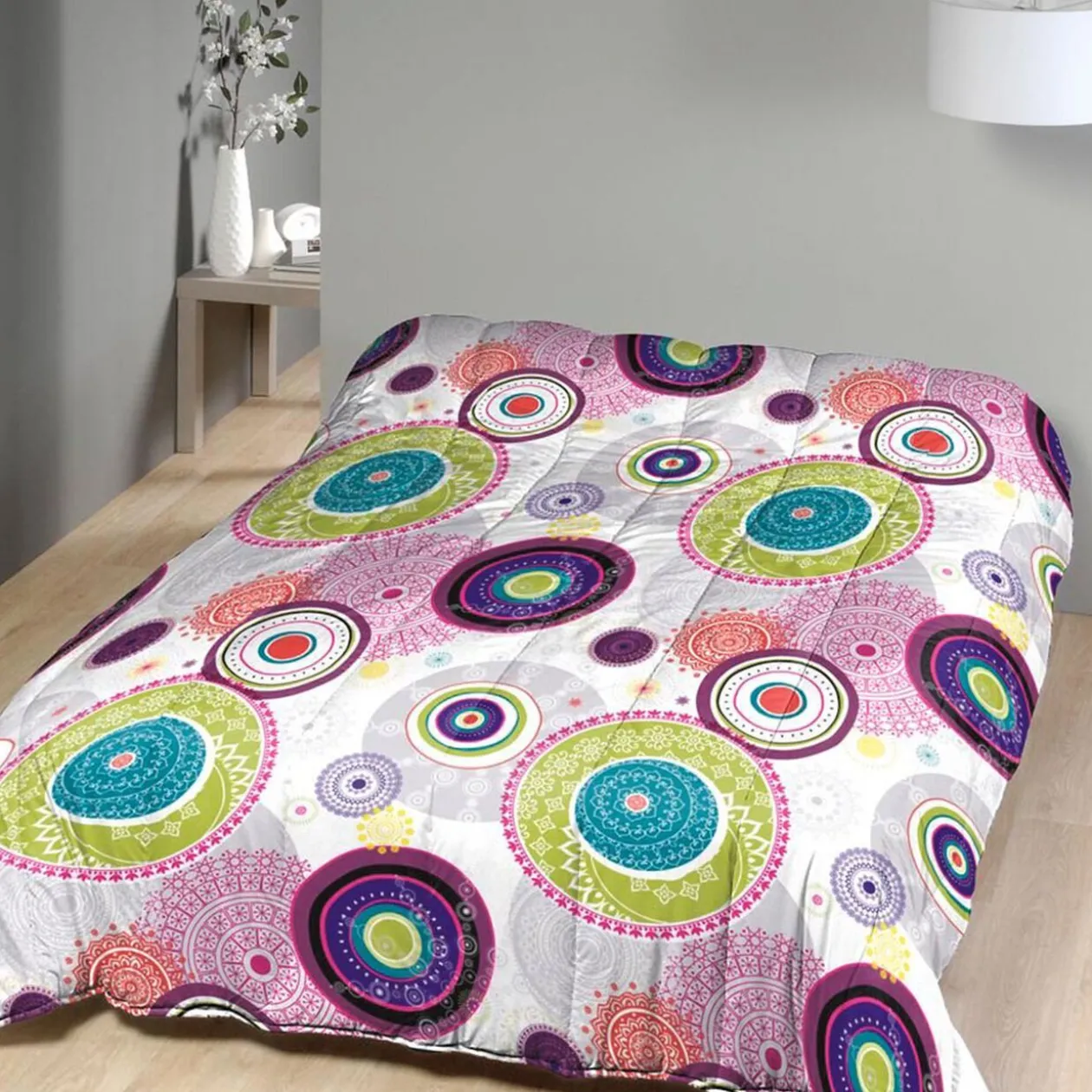 Plaid déco réversible gris bordure rose motif arabesque doux