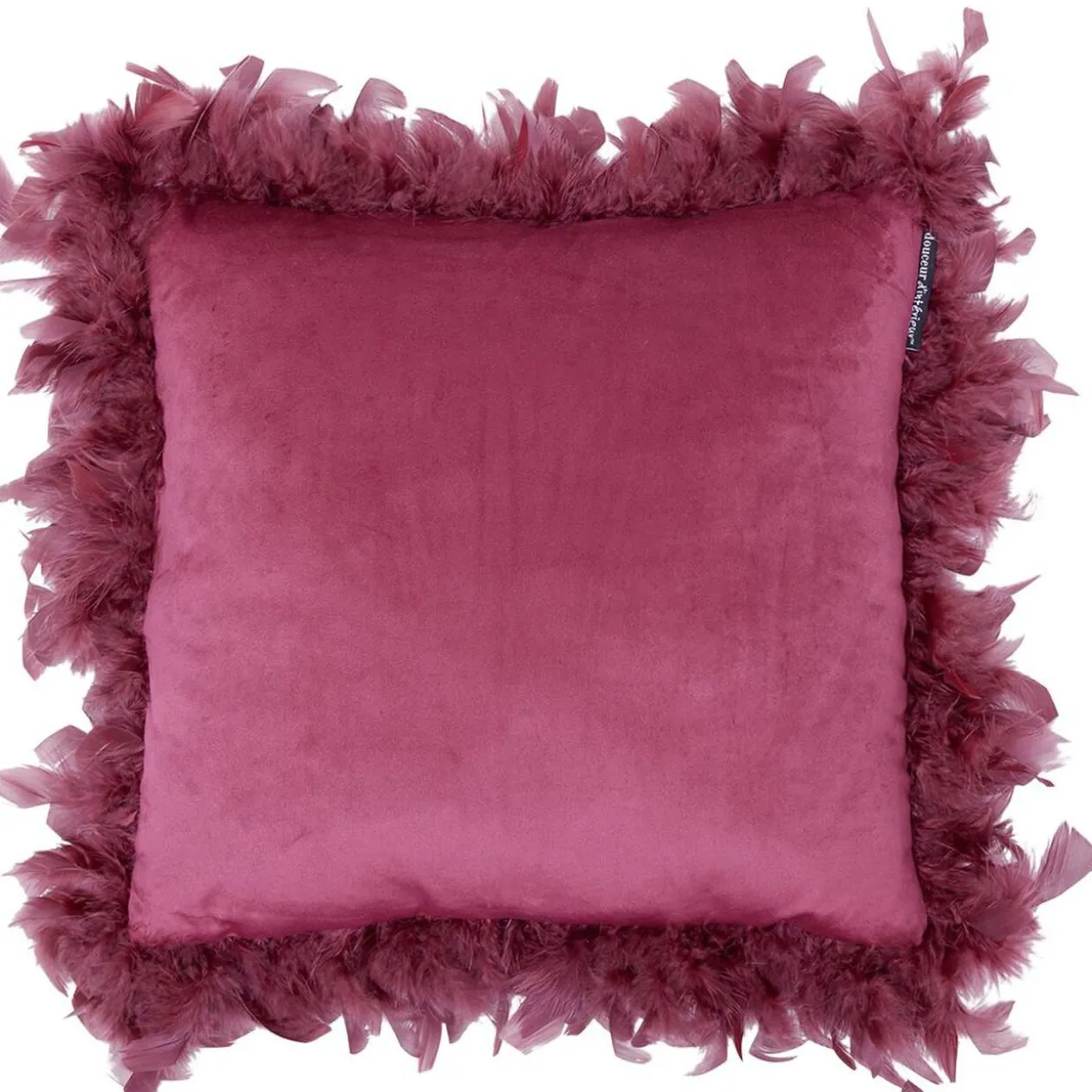 Ce coussin carré de couleur rouge bordeaux agrémenté de plumes sur tout son contour apportera un confort supplémentaire à votre mobilier tel que canapé, banc ou fauteuil avec une touche de douceur à votre décoration.