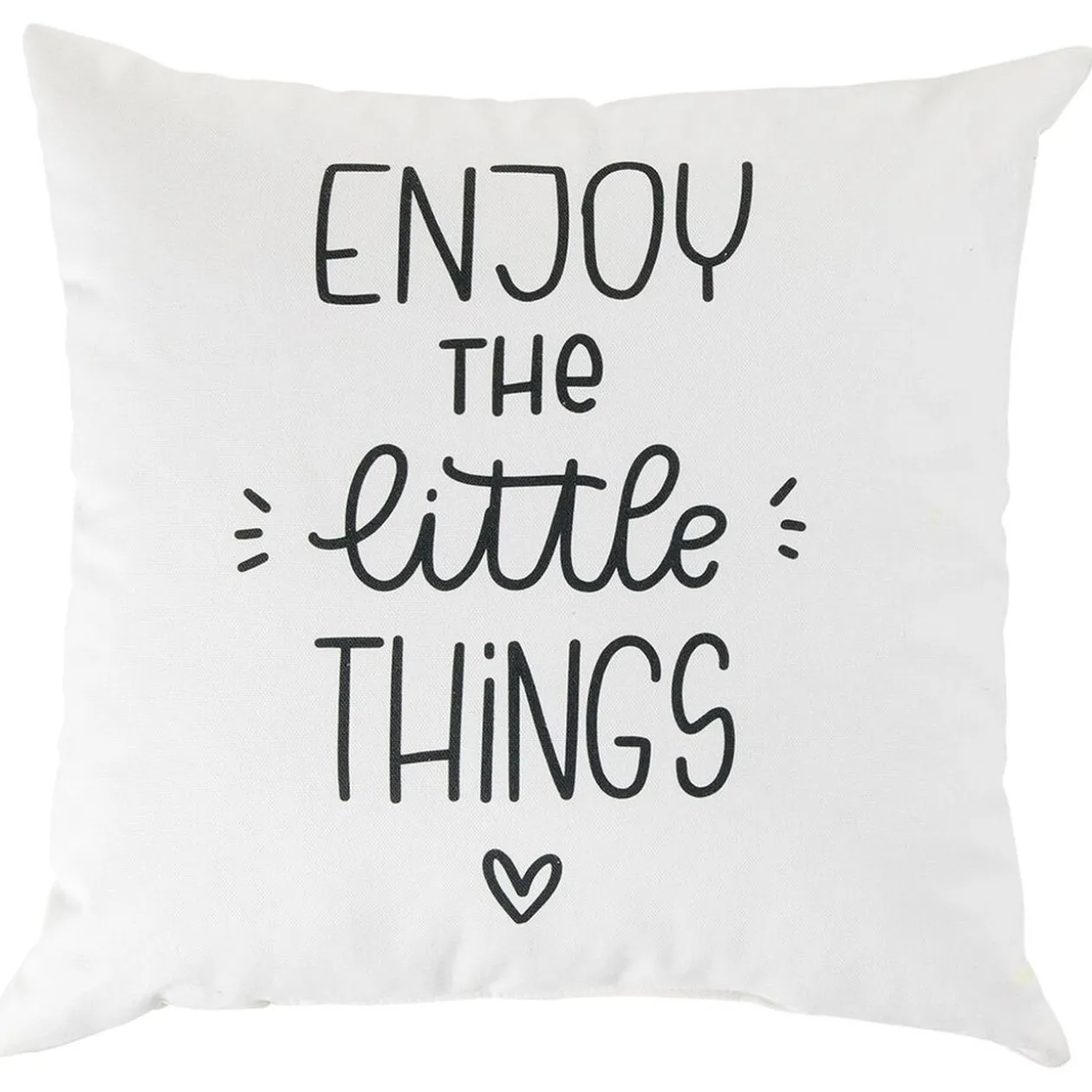 Ce coussin carré blanc avec inscription « Enjoy the little things » sera parfait pour agrémenter votre intérieur.