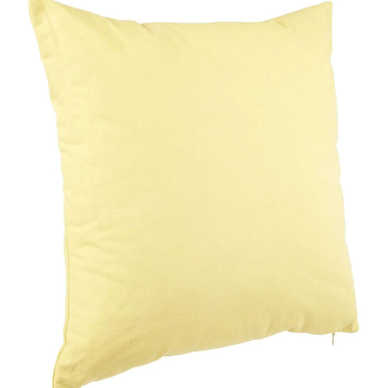 Coussin carré uni de couleur jaune or, parfait pour agrémenter votre intérieur.
