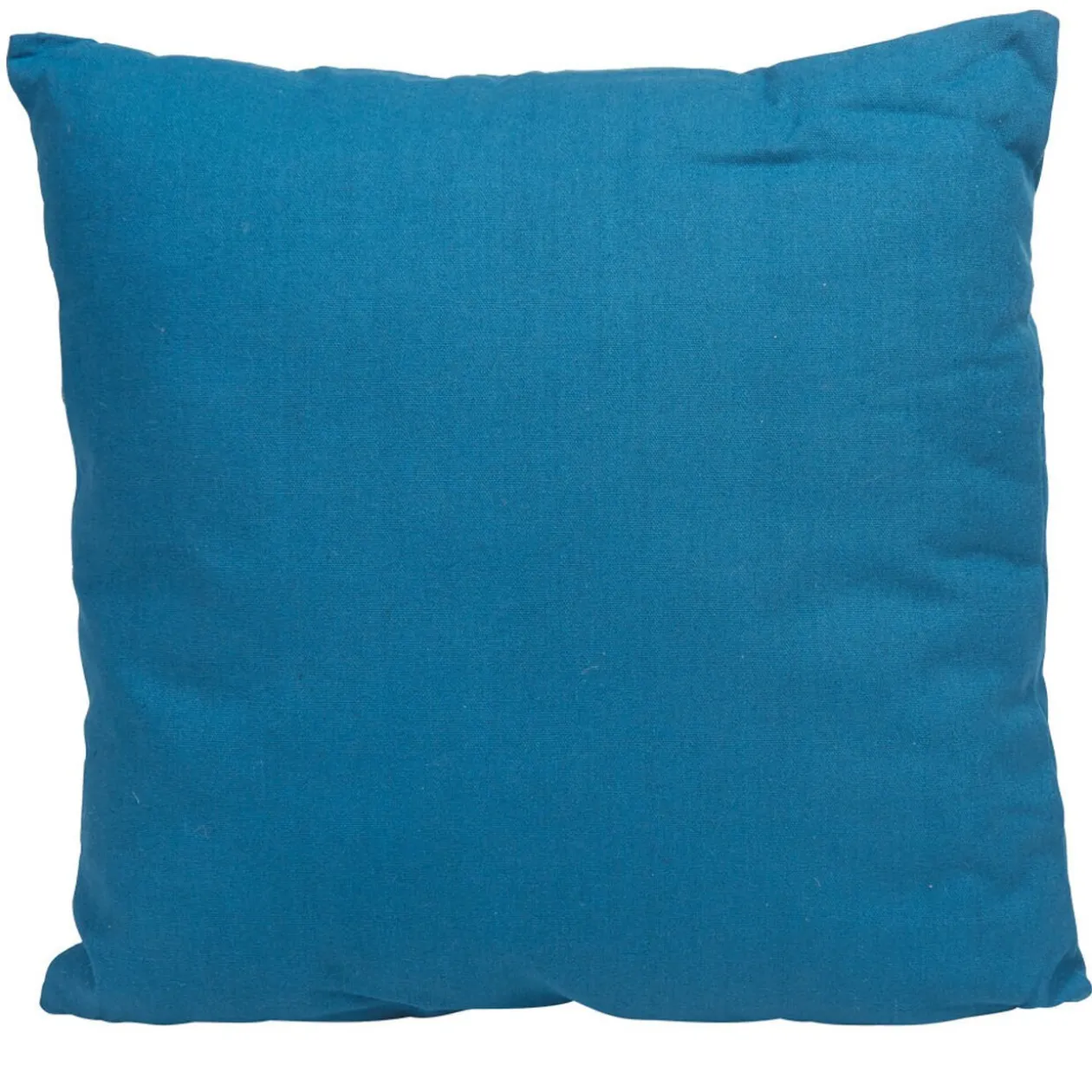 Coussin rectangulaire uni bleu canard en coton et polyester.