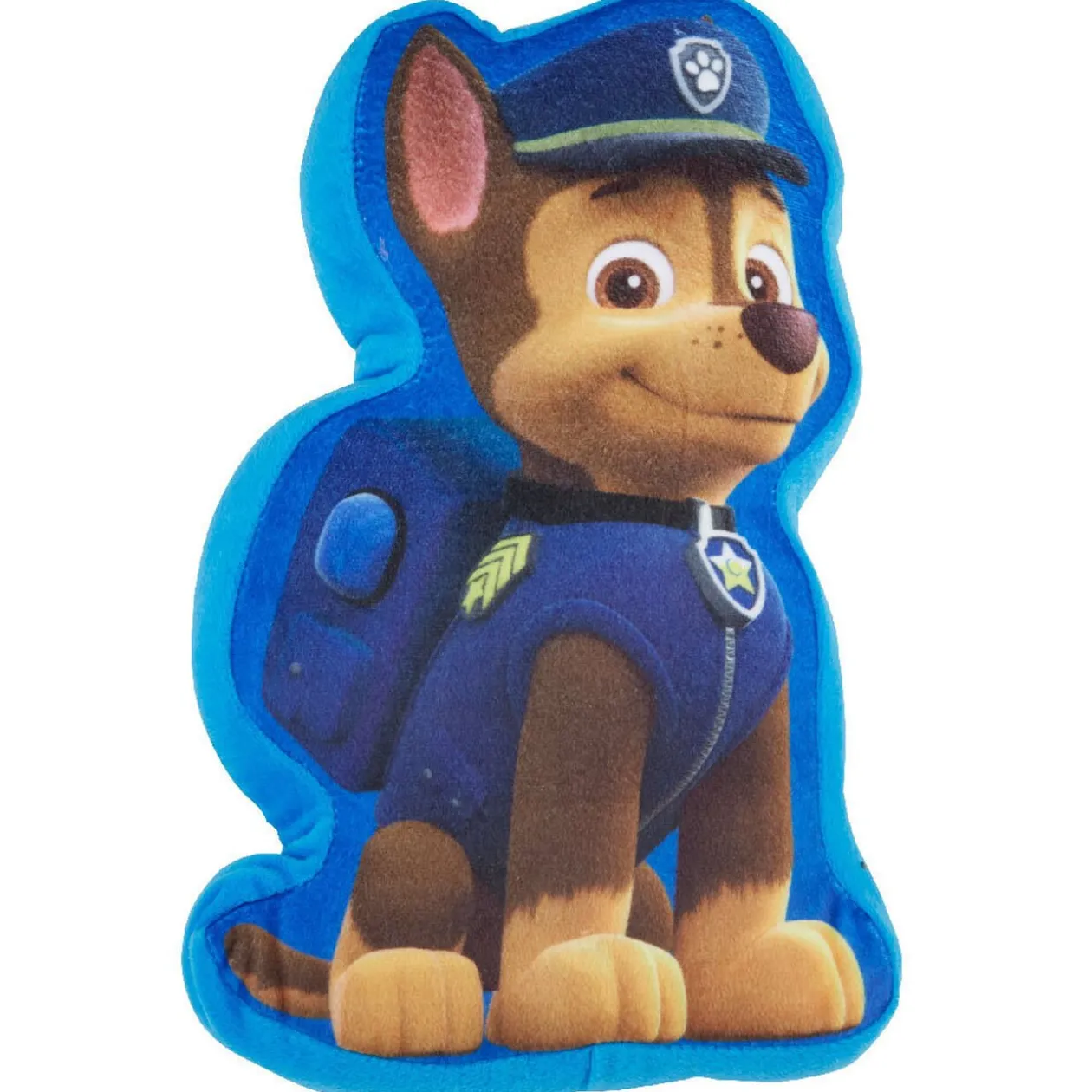 Coussin en forme de Chase Pat Patrouille, dim. 37×24 cm, polyester.