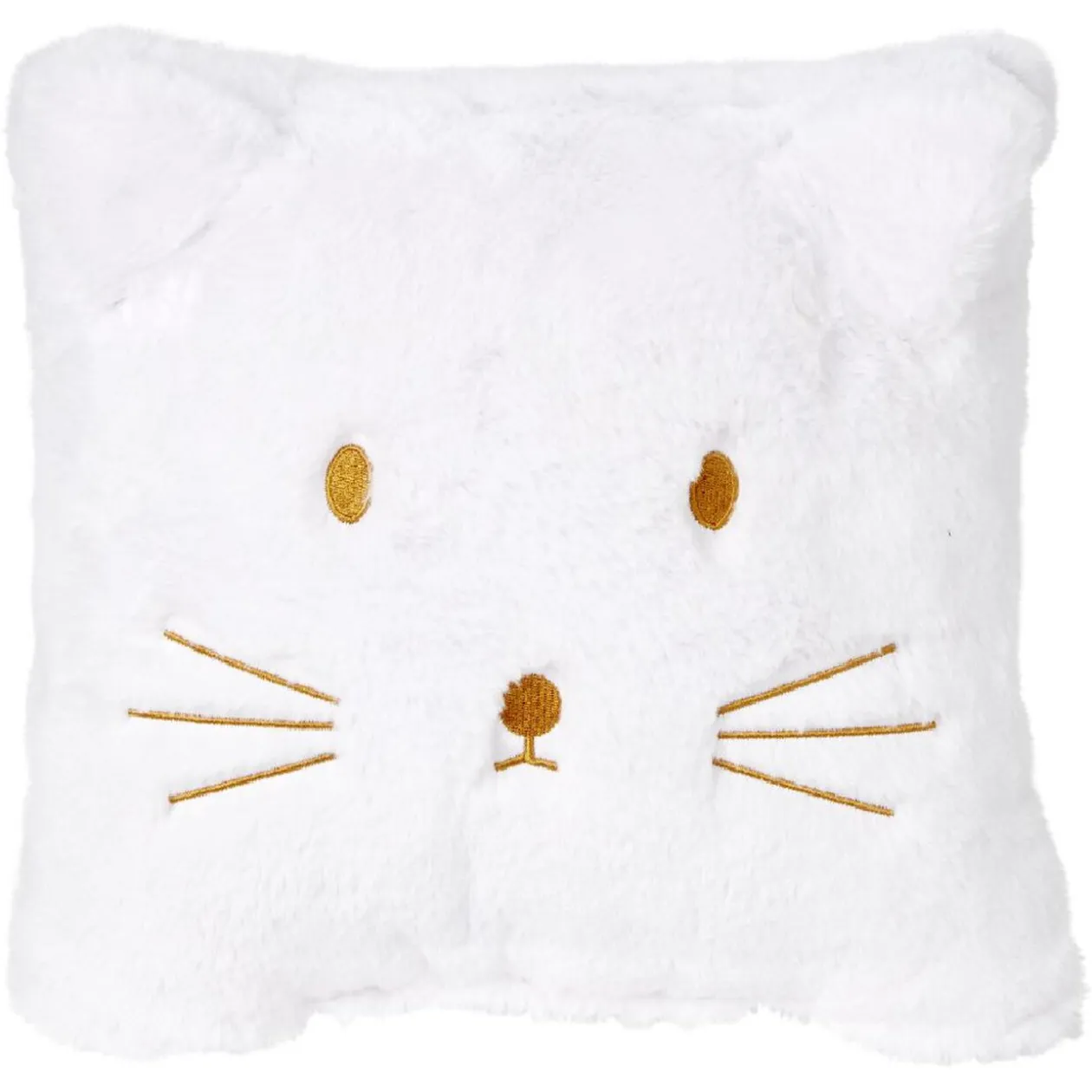 Coussin tout doux design tête de chat de forme carrée avec oreilles en relief.