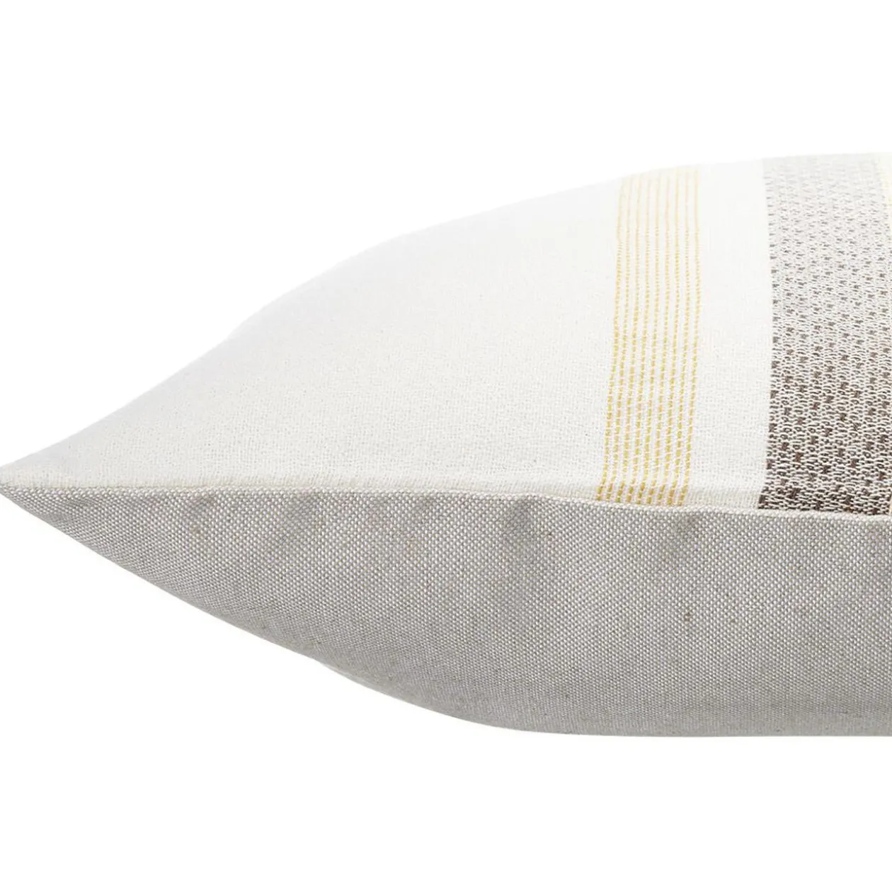 Ce coussin jacquard beige clair à rayures marron et beige foncé viendra apporter la petite touche finale de décoration à votre pièce.