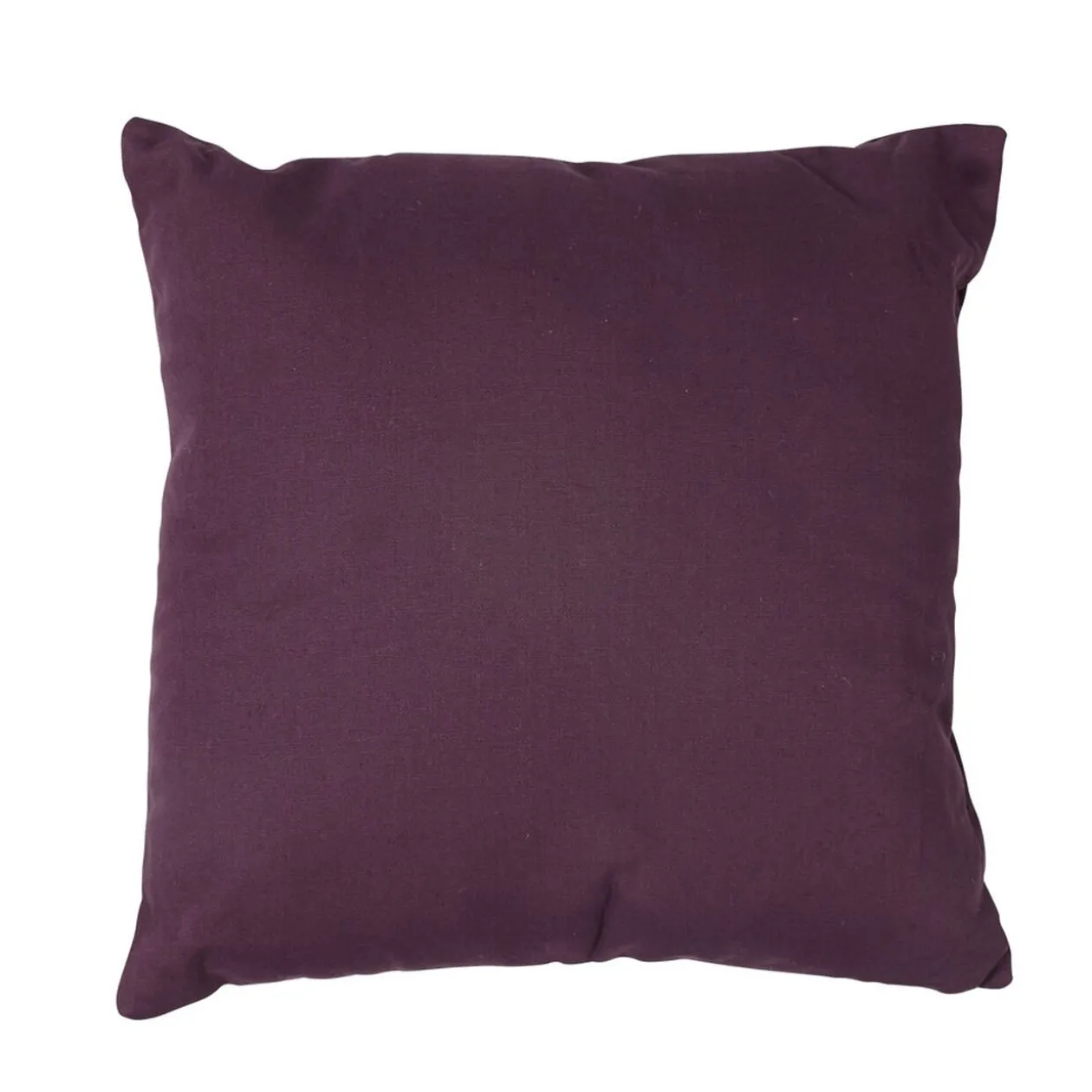 Coussin carré prune, dim. 40×40 cm, 50 % coton et 50 % polyester.