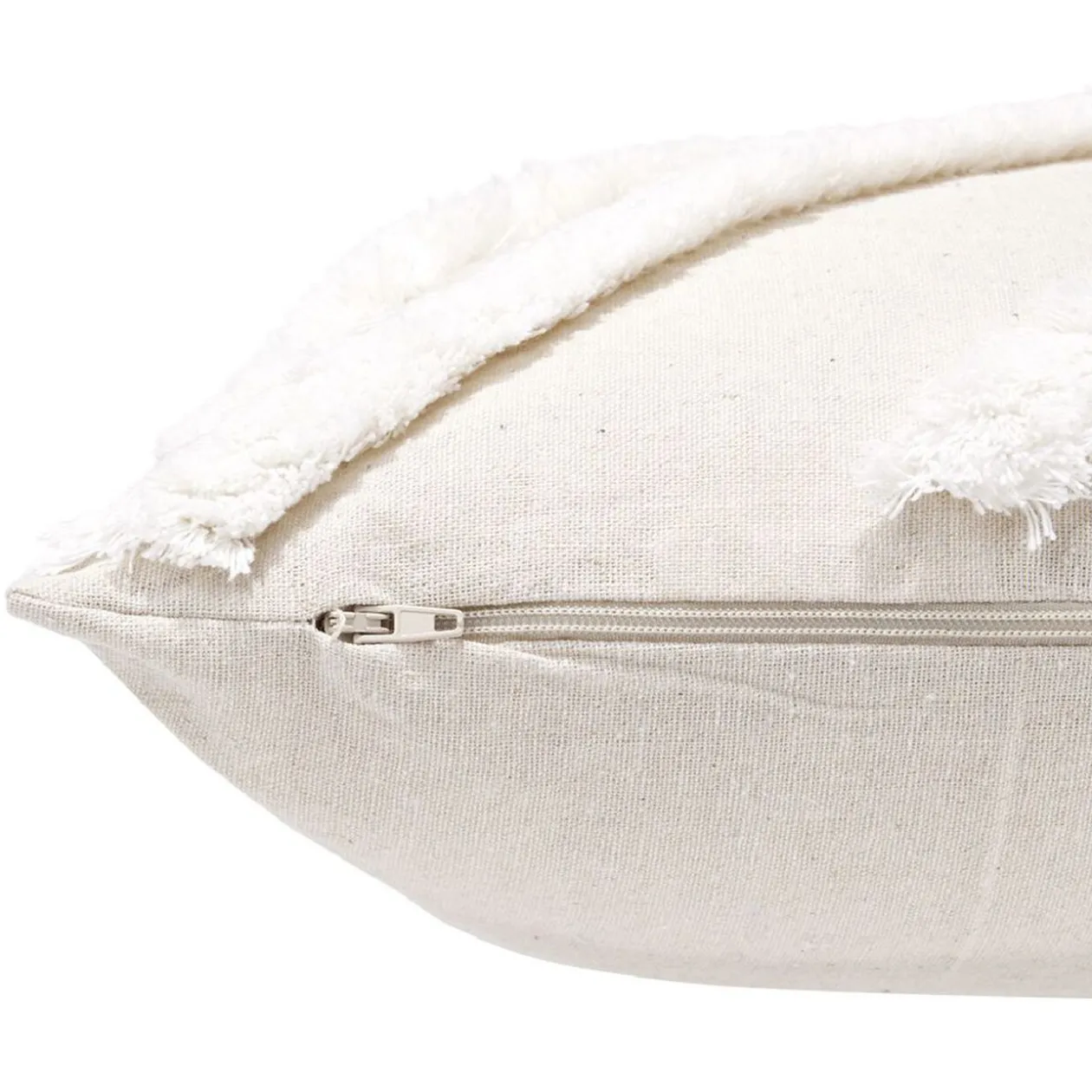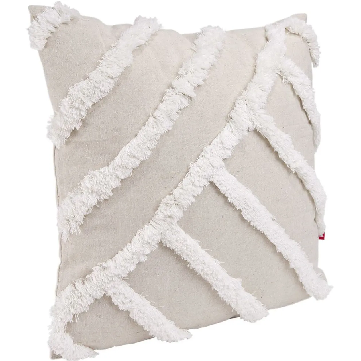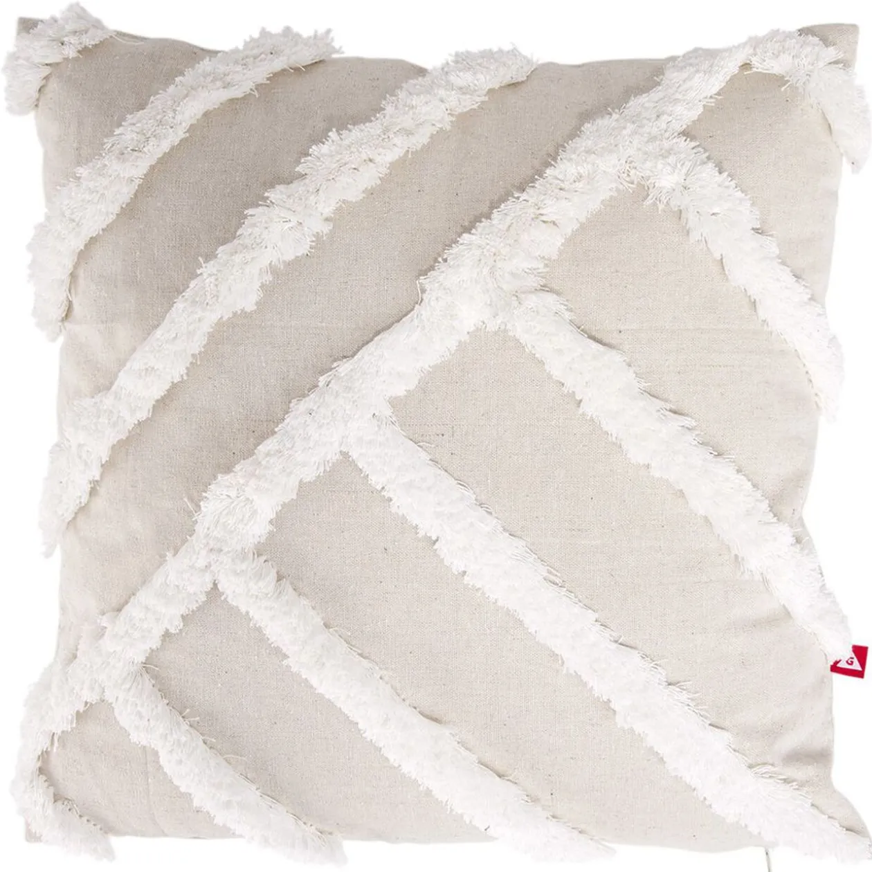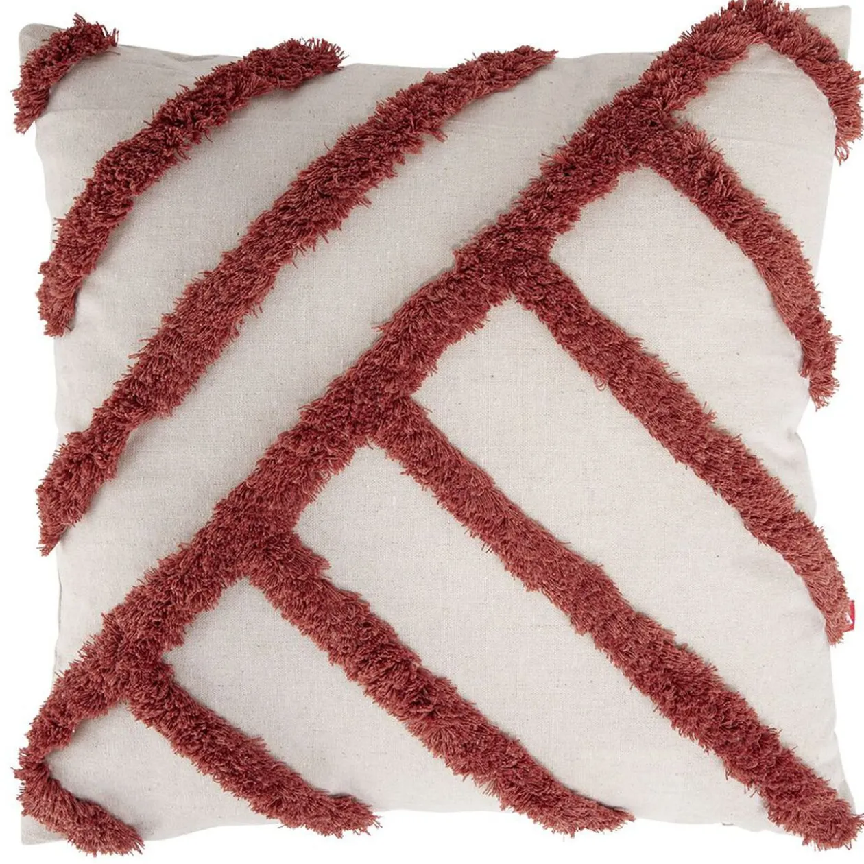 Coussin carré de couleur beige avec rayures tuftées colorées. En plus de vous apporter une touche déco, il apportera un confort supplémentaire à votre canapé.