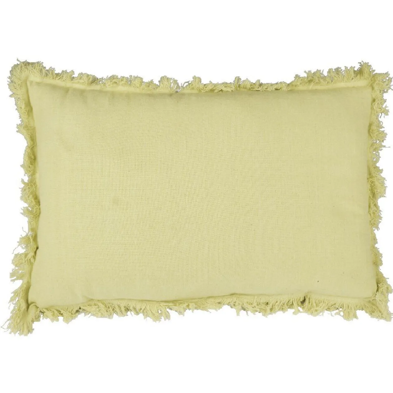 Coussin rectangulaire avec franges de couleur jaune uni.