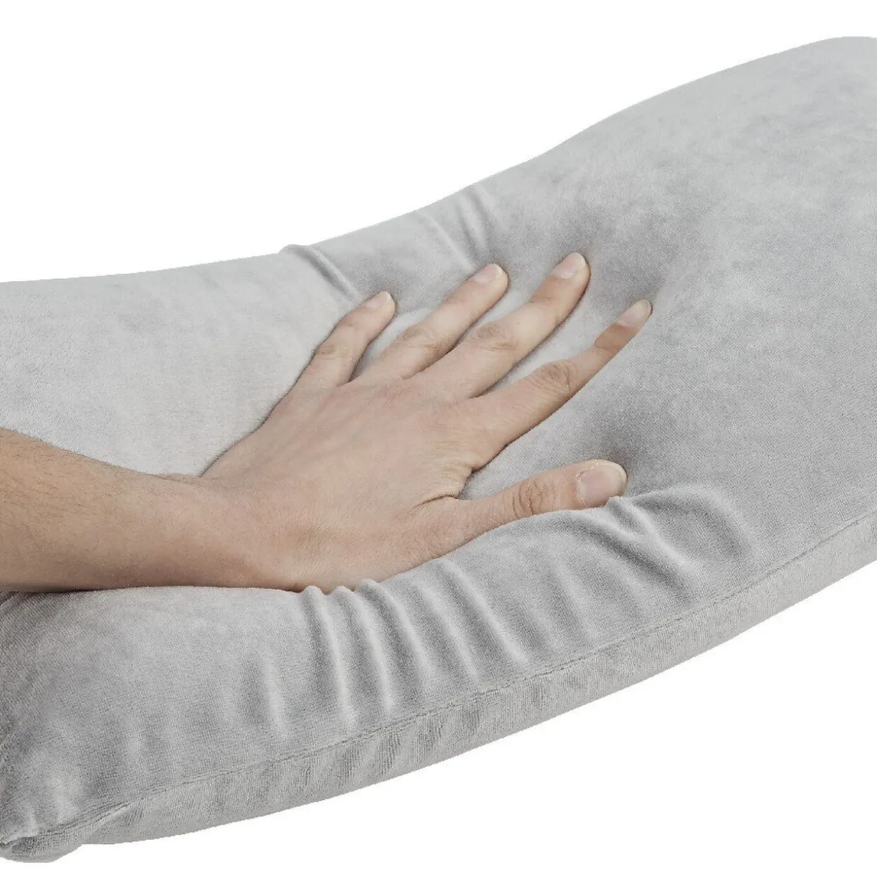 Coussin ergonomique rectangulaire gris à mémoire de forme de la marque Bleu Câlin, idéal pour caler la nuque, les lombaires et les genoux en voyage.