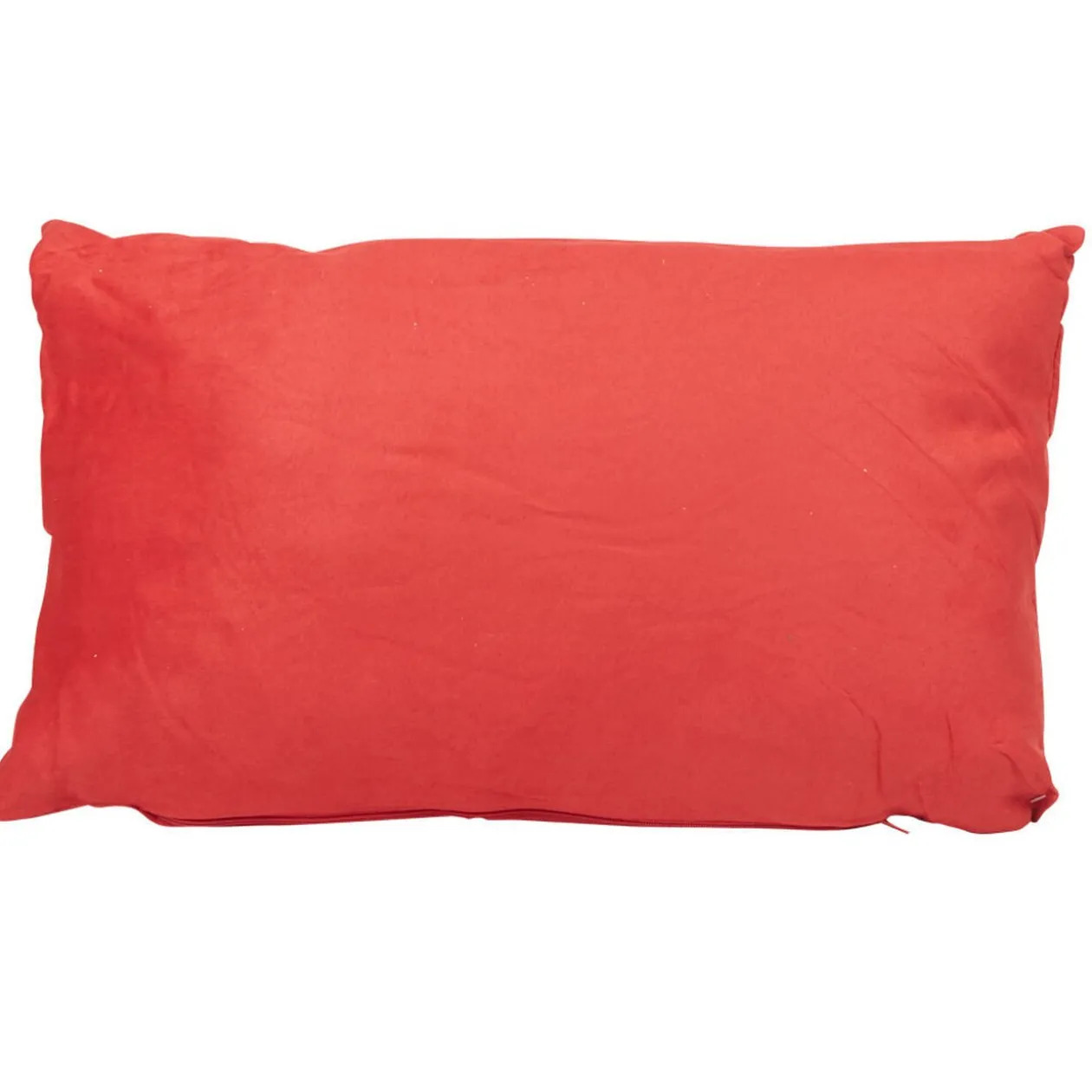 Coussin rectangulaire rouge aspect suedine, dim. 30×50 cm, polyester.