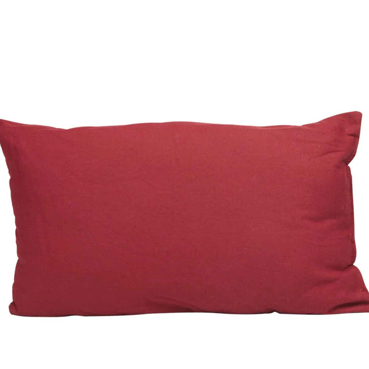 Coussin rectangulaire uni de couleur bordeaux lie de vin en coton et polyester.