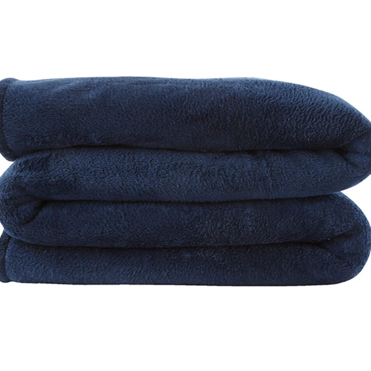 Couverture bleue, dim. 140×200 cm, polyester, toucher doux.