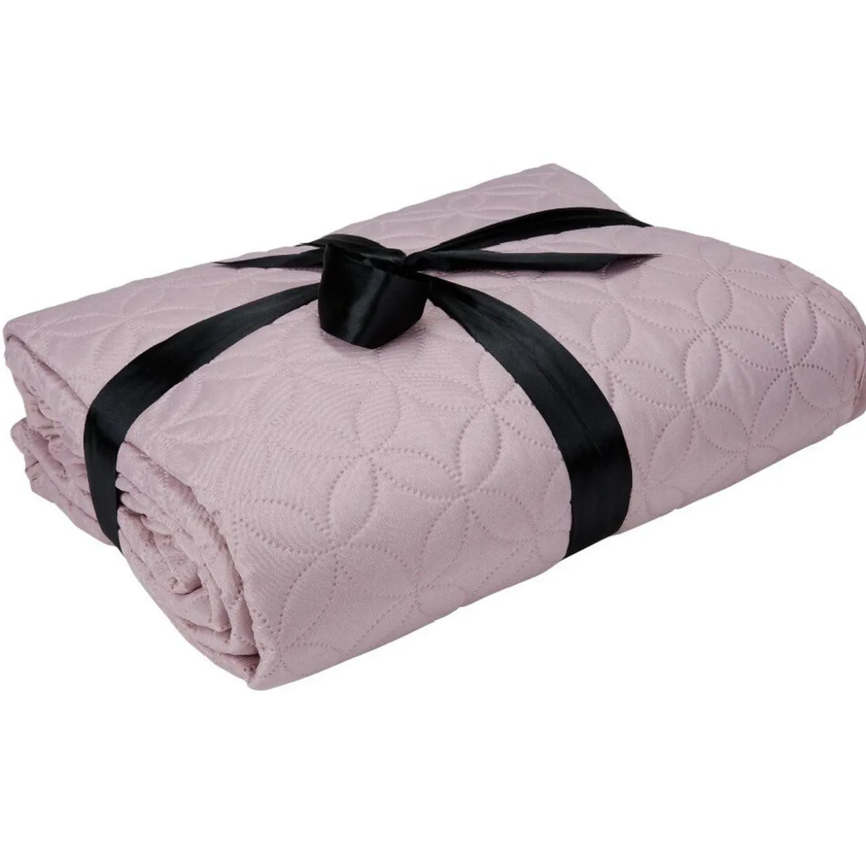 Plaid déco réversible gris bordure rose motif arabesque doux