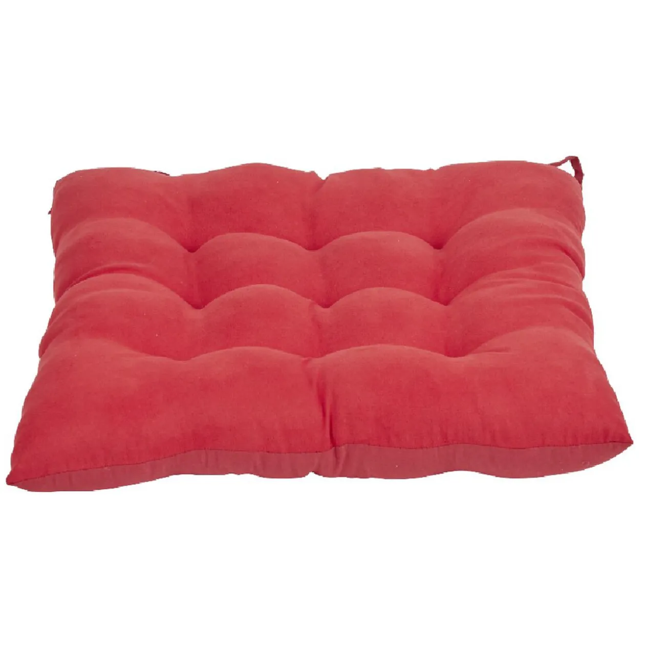 Dessus de chaise matelassé de couleur rouge équipé de lacets d’attaches.