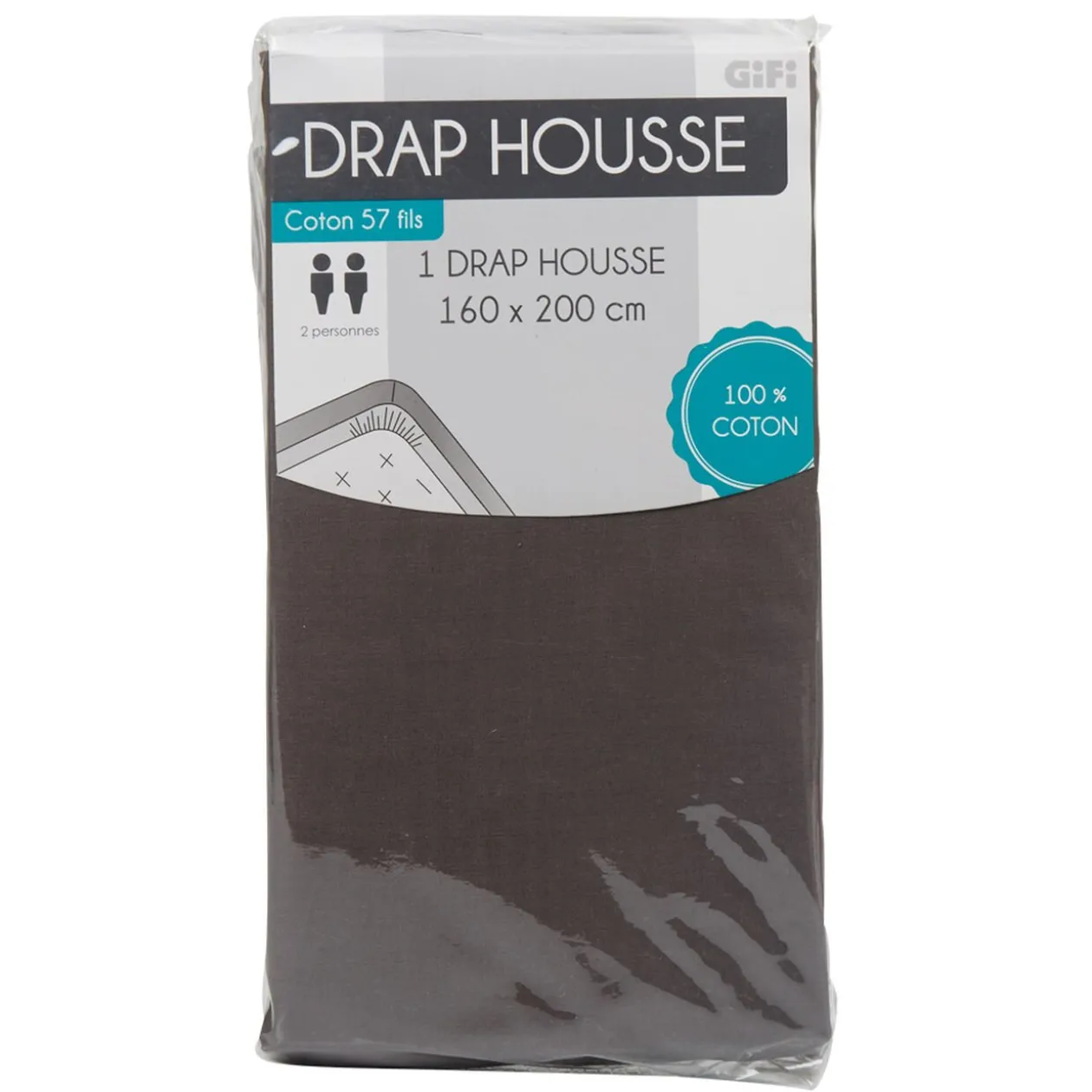 Drap housse gris foncé 2 personnes, dim. 160×200 cm, 100 % coton 57 fils/cm2.