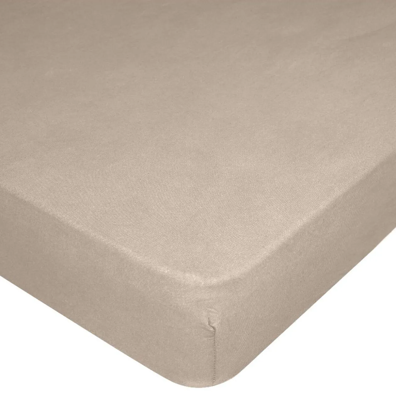 Drap housse taupe jersey de coton extensible 1 personne pour passer des nuit confortables.