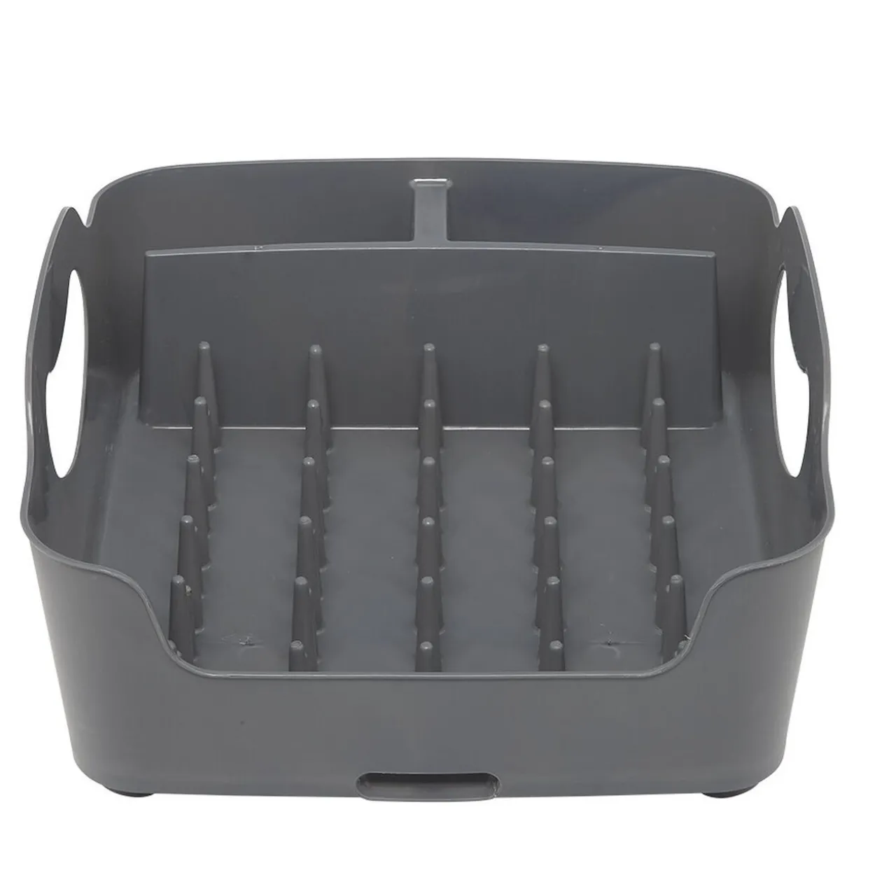 Égouttoir à vaisselles gris foncé avec 2 emplacements pour les couverts.