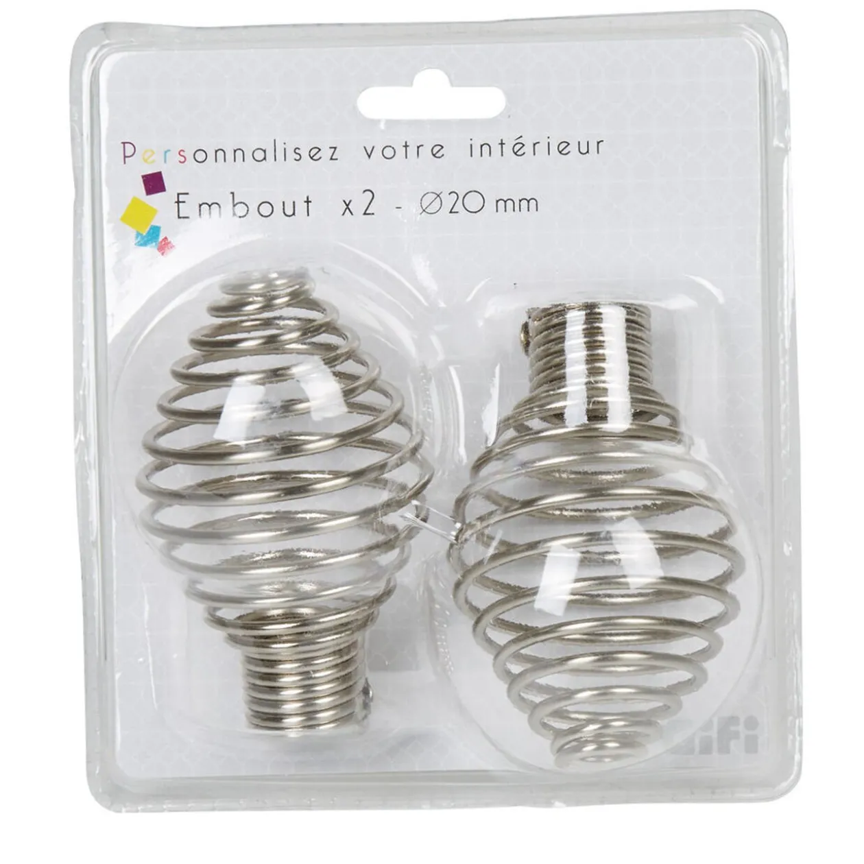 2 embouts couleur chrome en forme de spirale pour tringle à rideaux de 20 mm de diamètre.
