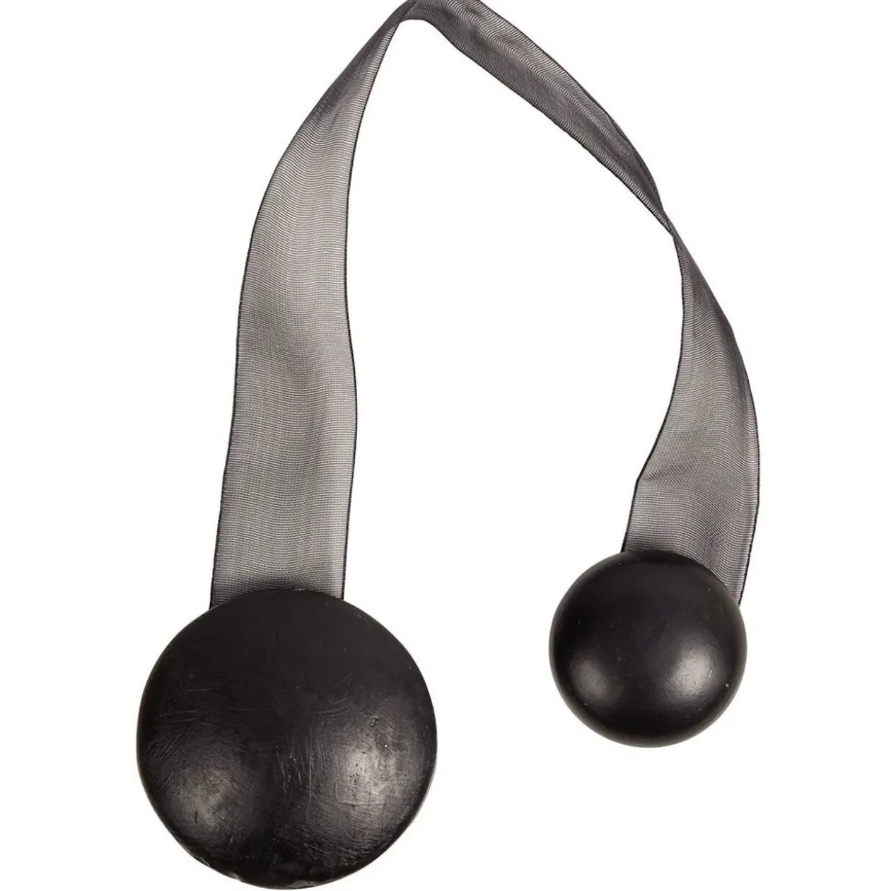 Embrasse aimantée ronde en résine noire. Pratique pour maintenir vos rideaux avec style sans percer votre mur.