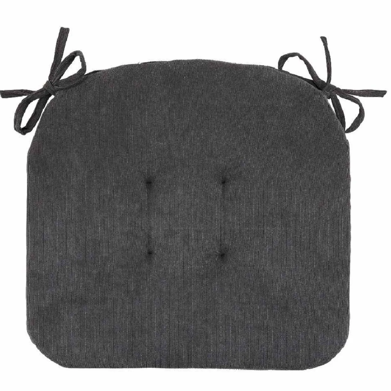 Galette de chaise carrée en polyester avec dessus capitonné uni gris.Fermetures par nouettes