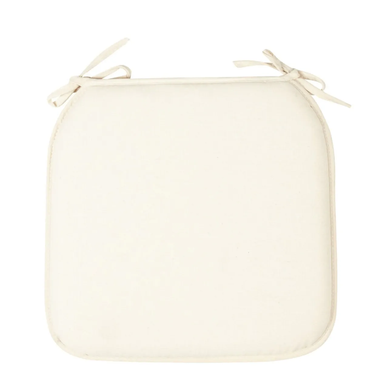 Galette de chaise écrue, dim. 38×36 cm, 50 % coton et 50 % polyester.