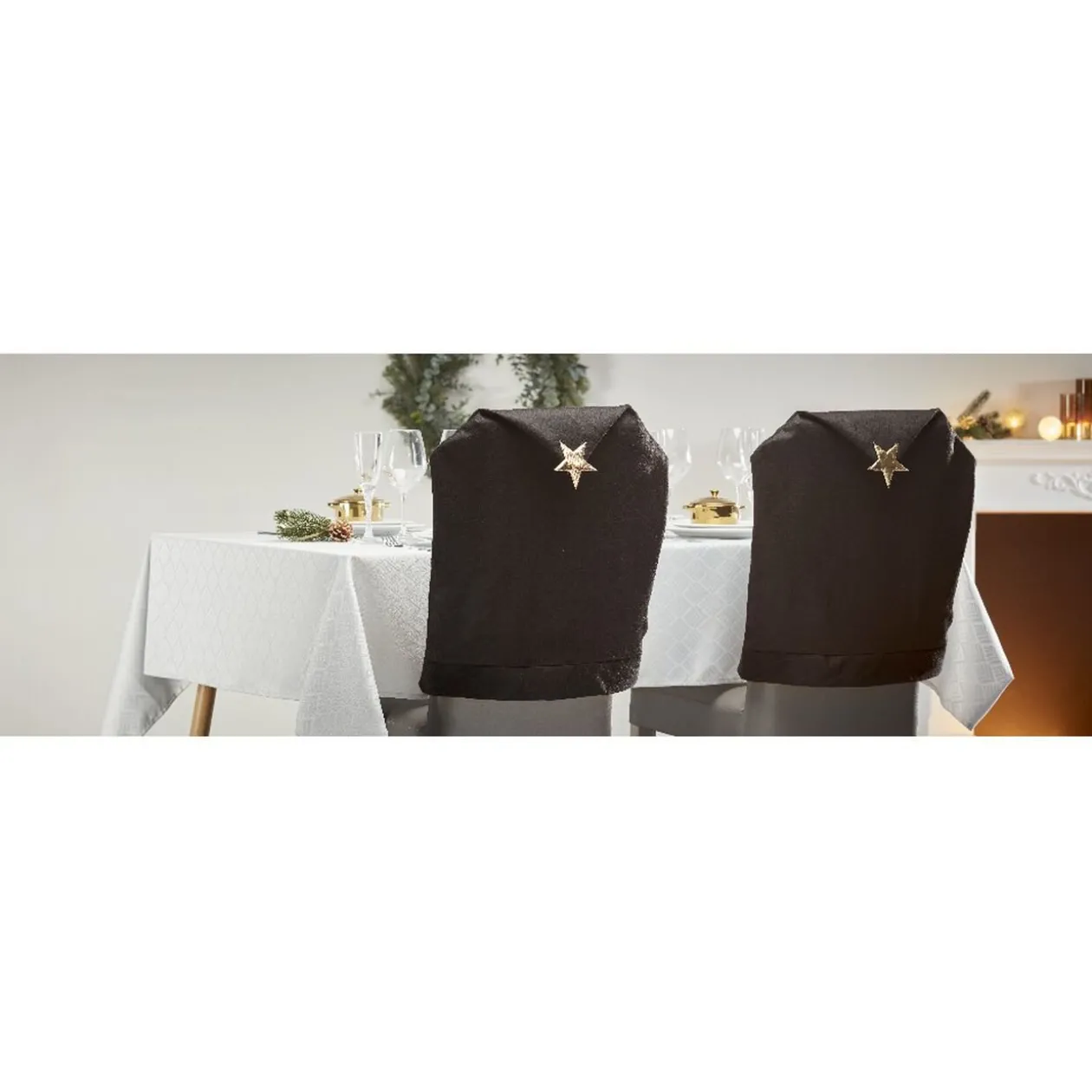 Habillez votre chaise avec élégance grâce à cette jolie housse noire assortie d’un motif étoile dorée à l’arrière de la housse. Dans le même style, vous avez aussi les housses de chaises blanches avec motif flocon sous la référence 532195, n’hésitez pas à taper le code directement dans notre moteur de recherche !