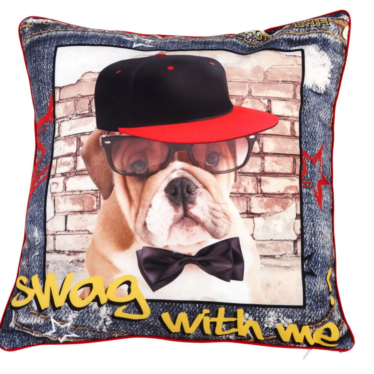 Housse de coussin design chien, dim. 40×40 cm, polyester.