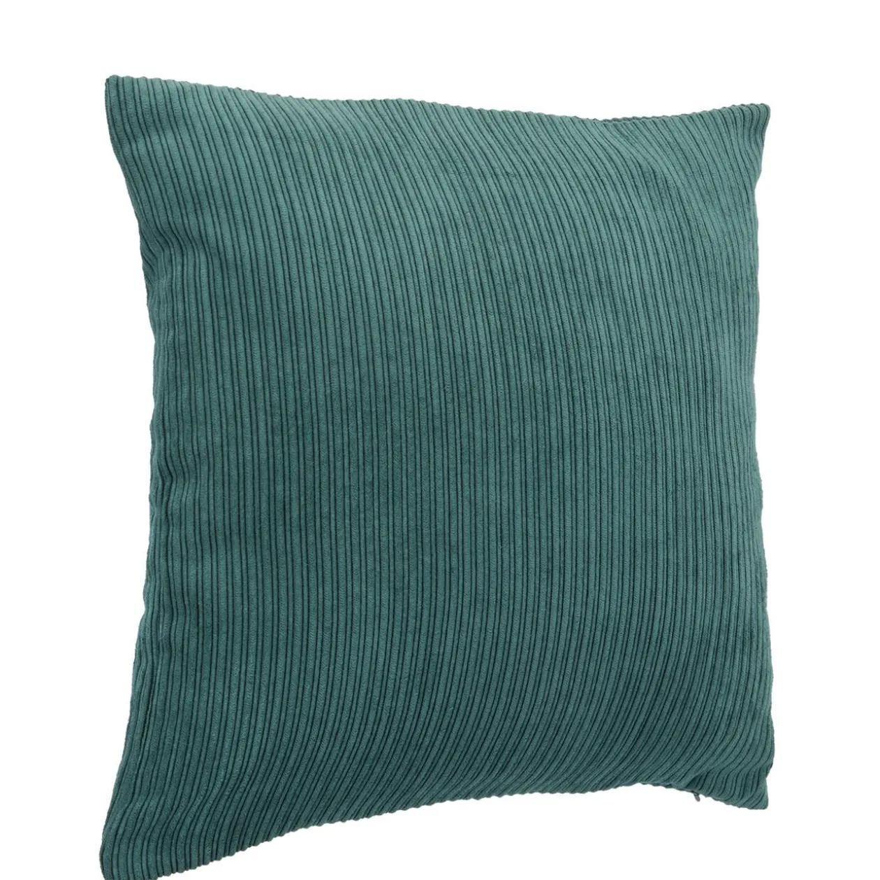 Housse de coussin carrée en velours et rayures de couleur vert émeraude.