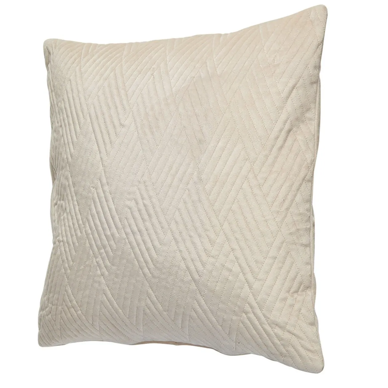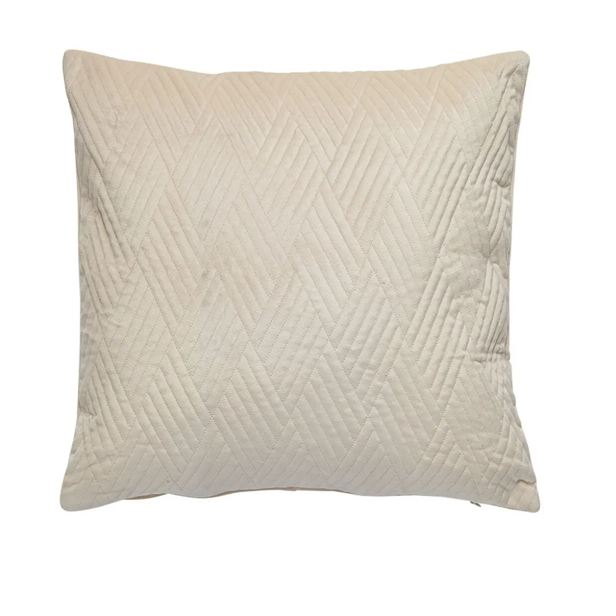 Housse de coussin carrée beige en velours et au motif pinsonic.
