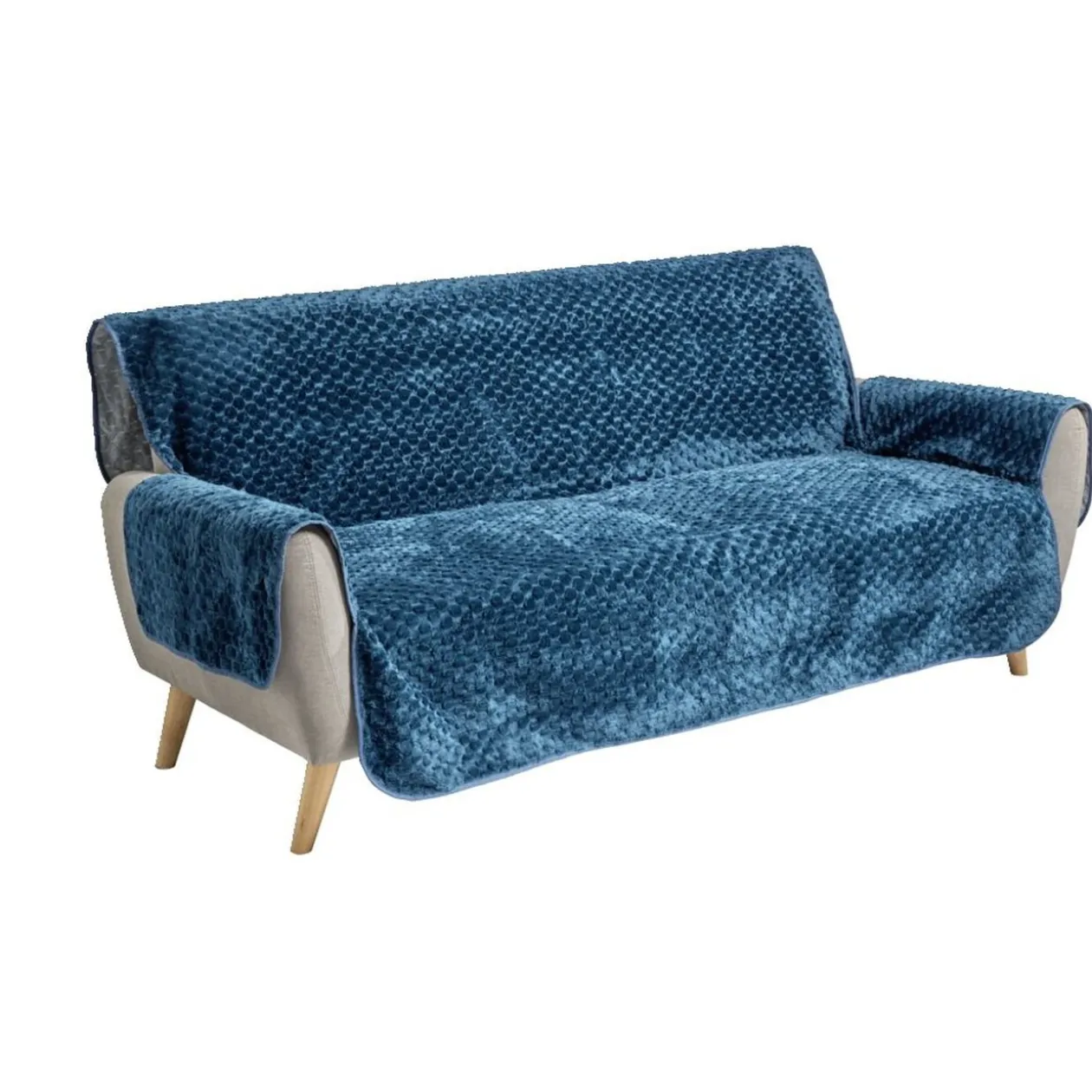 Housse protège canapé 3 places, en polyester, dimensions 179 x 279 cm.