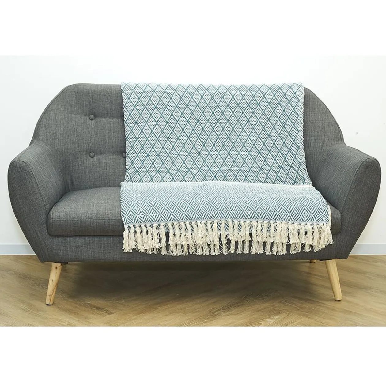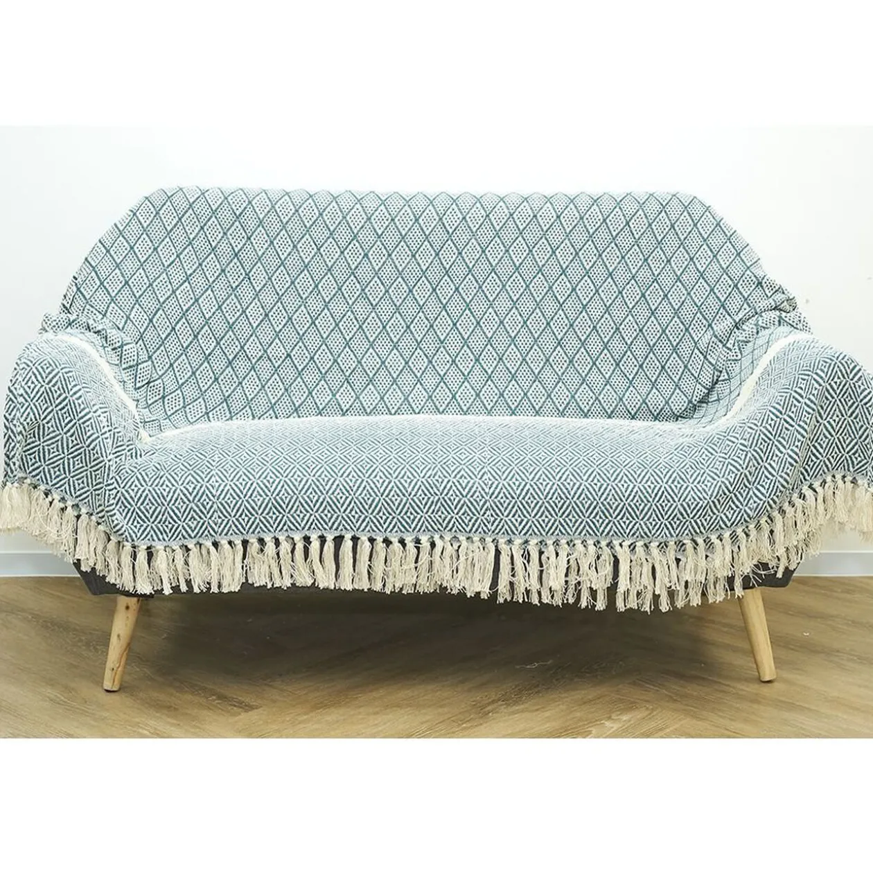 Jeté de canapé design géométrique de couleurs ivoire/gris ou ivoire/bleu.