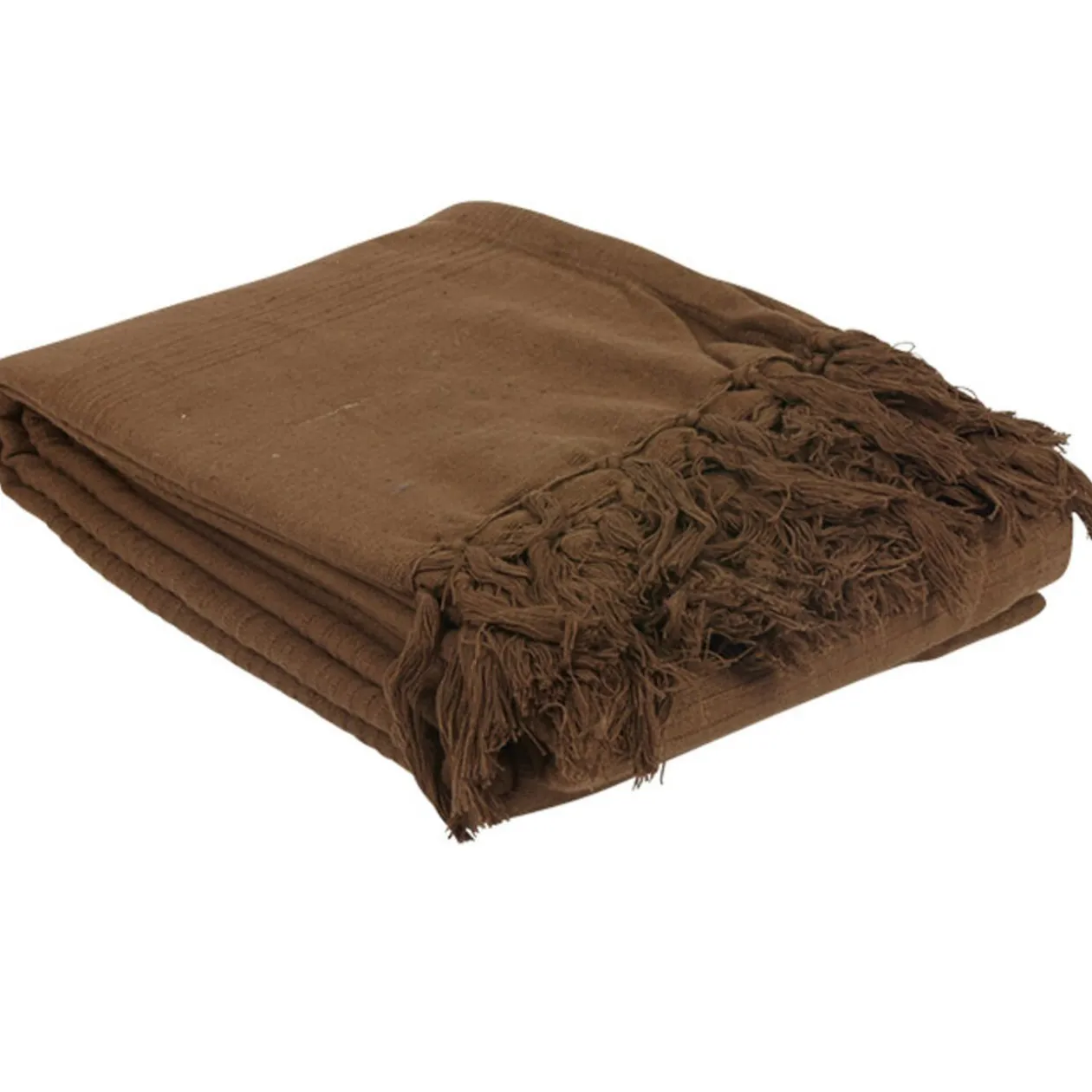 Jeté de canapé à franges marron, dim. 170×250 cm, coton.