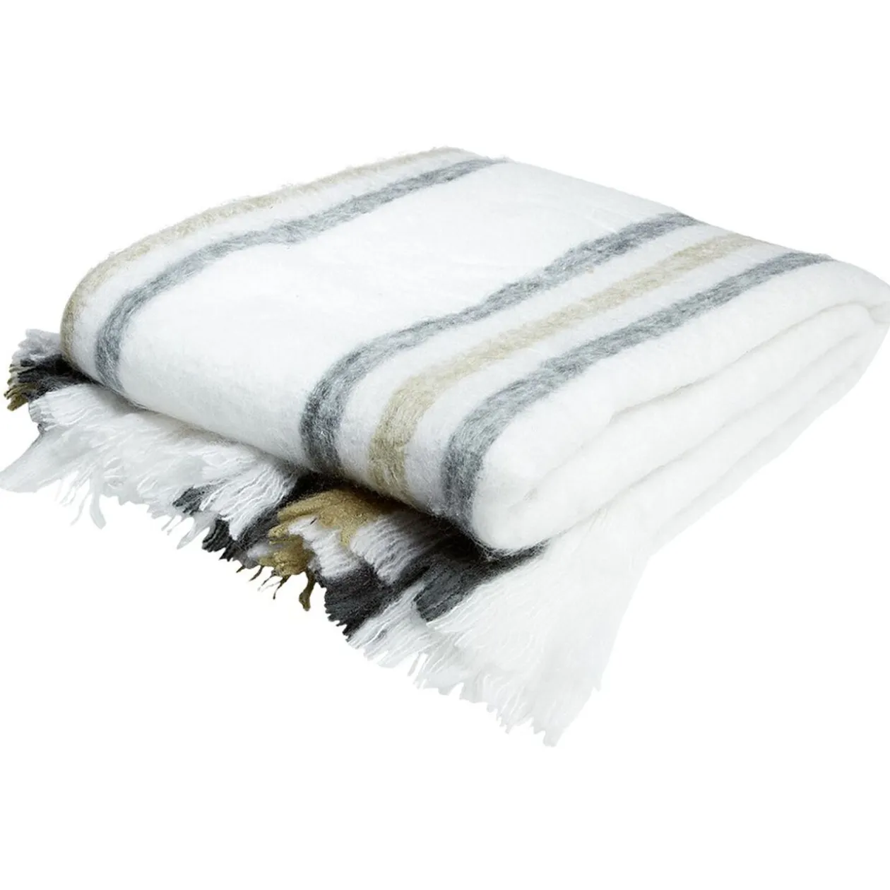 Décorez votre salon avec une touche de douceur en optant pour ce jeté de canapé carré à rayures blanc, noir et marron