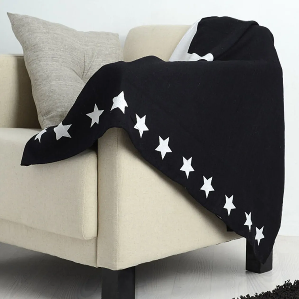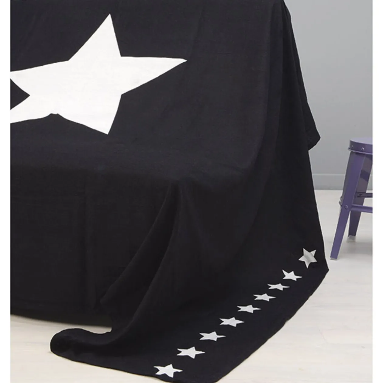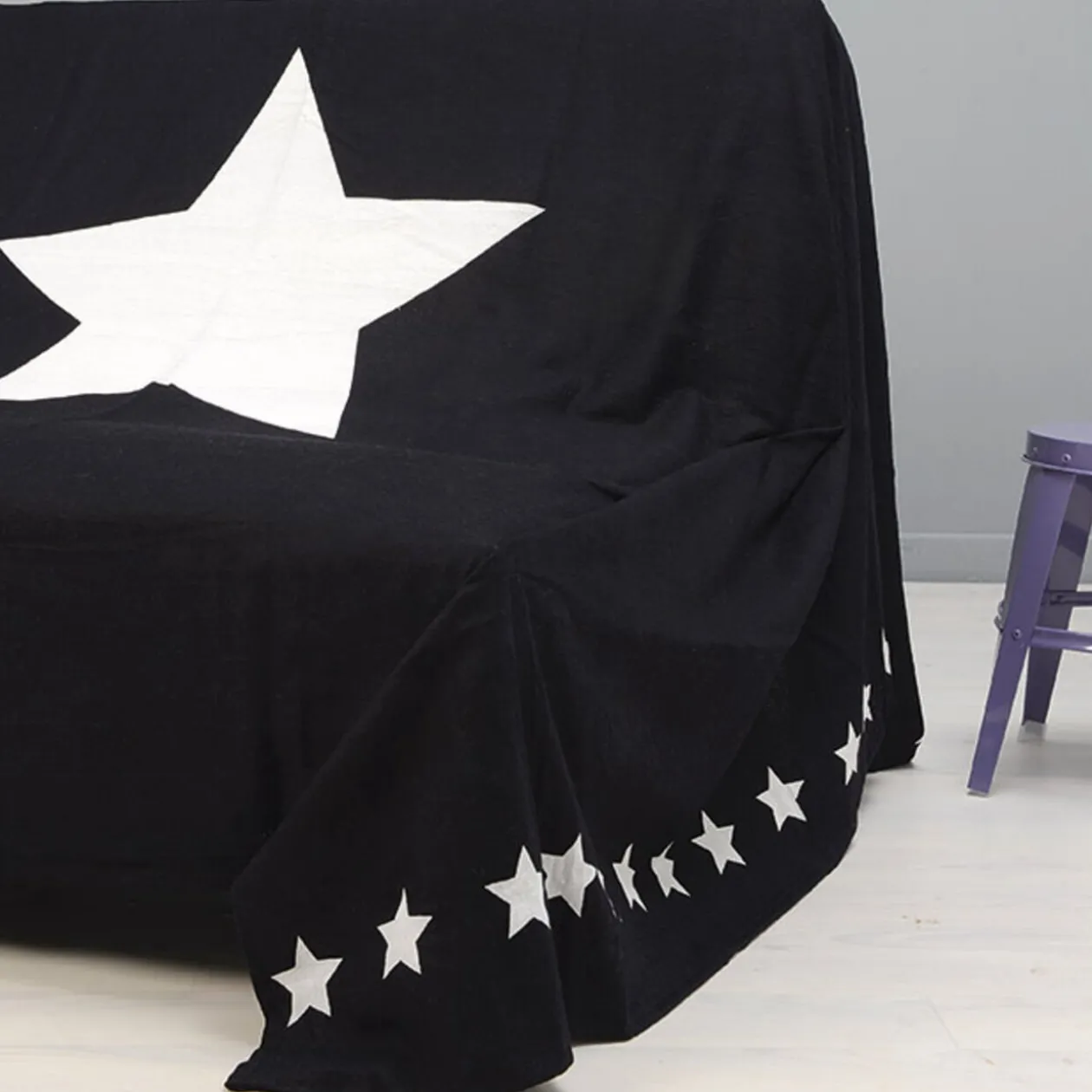 Jeté de canapé bleu marine design étoiles blanches, dim. 170×250 cm, 100 % coton.