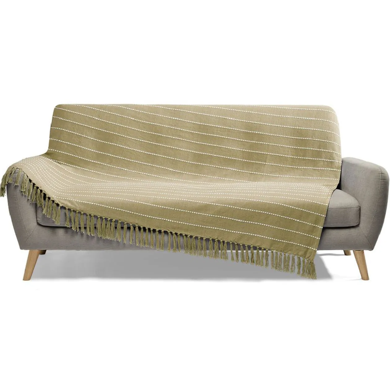 Jeté de canapé en polycoton avec surpiqûres de couleur écru.