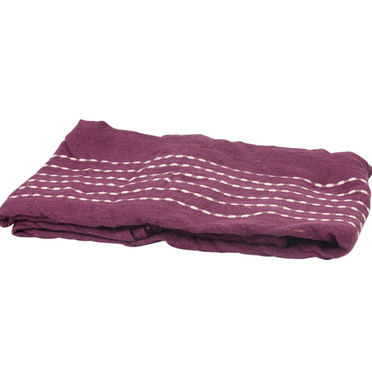 Jeté de canapé prune uni avec surpiqûre blanche. Matière : 100 % coton.