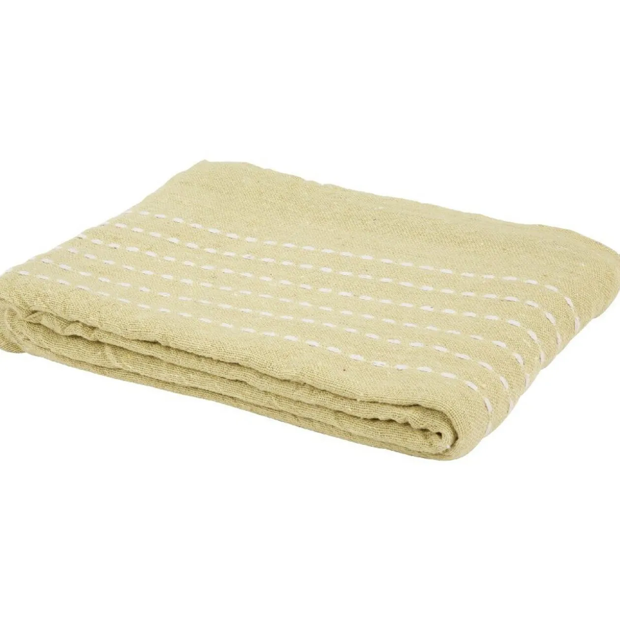 Jeté de canapé vert anis uni avec surpiqûre blanche. Matière : 100 % coton.