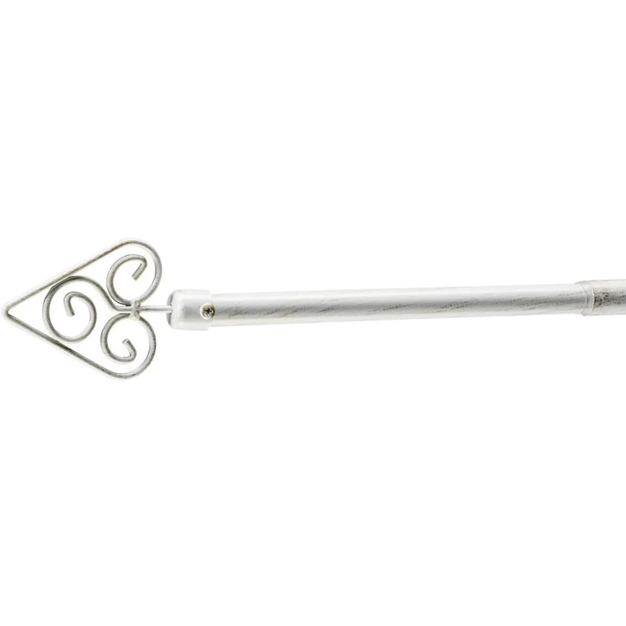 Kit tringle blanche d’une longueur de 95 à 180 cm avec embouts en forme de coeur avec deux supports et deux embouts.