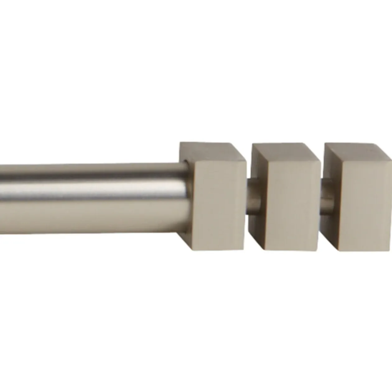 Kit tringle extensible gris, embout design carré, L. 120/210 cm, métal, accroches incluses